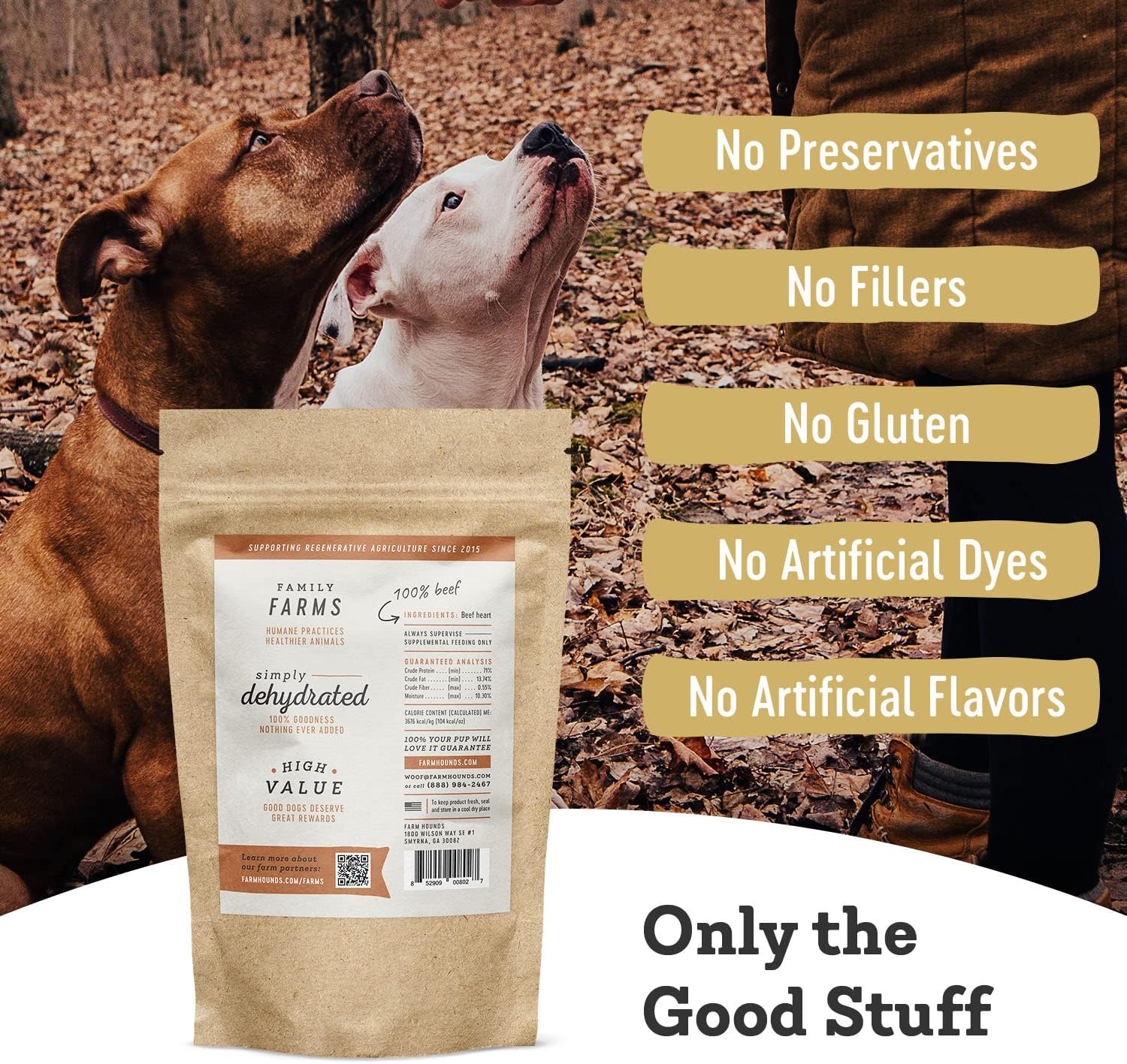 - QUALITY NATURAL INGREDIENTS - Transparently sourced from 100% pasture-raised, grass-fed cattle, these dog chews are made with one single ingredient, 100% beef heart. Dogs crave organs due to the high levels of vitamins and minerals, so this treat is sure to make any carnivore salivate. With the power of dehydration, we offer your pups treats that are free of salt, sugar, fillers and chemicals.