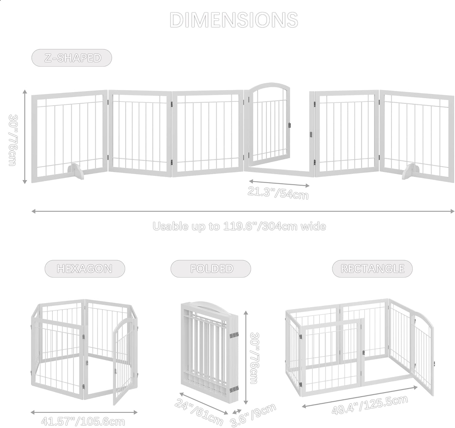 - 【SIMPLE & STURDY PET GATE】This convertible freestanding dog gate is a pet fence, room divider, and pet pen all in one.