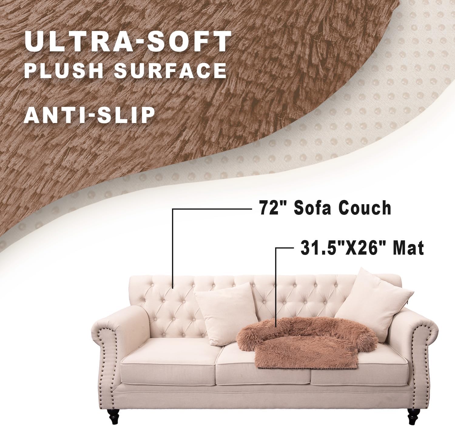 Dogs/Cats Bed Mats, Dog Pad Couch Cover for Dogs, Sofa Style Luxurious Mat for Pets, Waterproof Lining and Nonskid Bottom Perfect on Dog Crate, Cat Cage or in The Car. (Desert Brown, M)