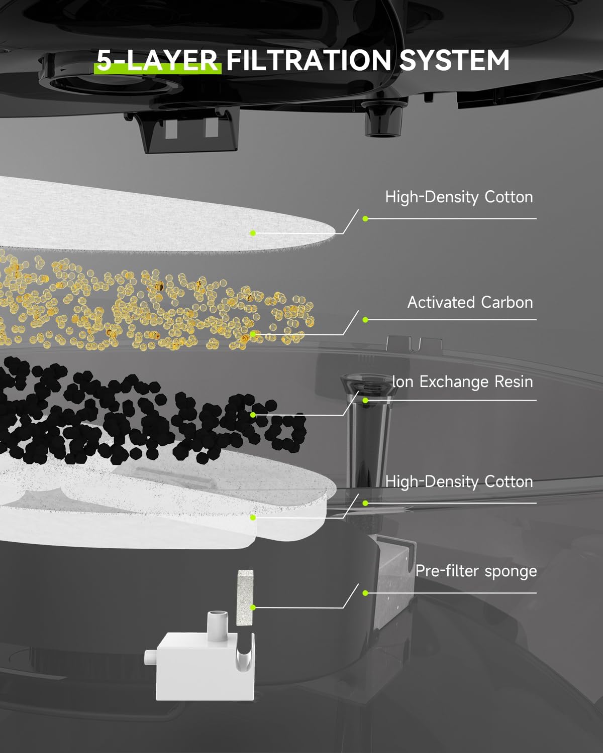 - 【Health-Conscious Design】Made with BPA-free, food-grade materials, FP30 water fountain ensures your pets drink safely. Its generous 7L capacity is perfect for large dogs or multiple pets, while the 6-layer filtration system helps remove impurities, providing fresh, clean water with every sip.