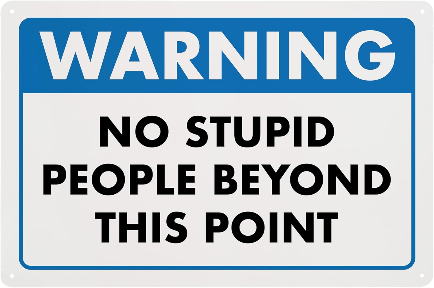 Warning, No Stupid People Beyond This Point - Humorous Plastic Sign - 8" x 12" - Funny Garage Sign, Office Wall Decor, Mechanic Gift, Street Sign for Bedroom - ENVISIONED Signage
