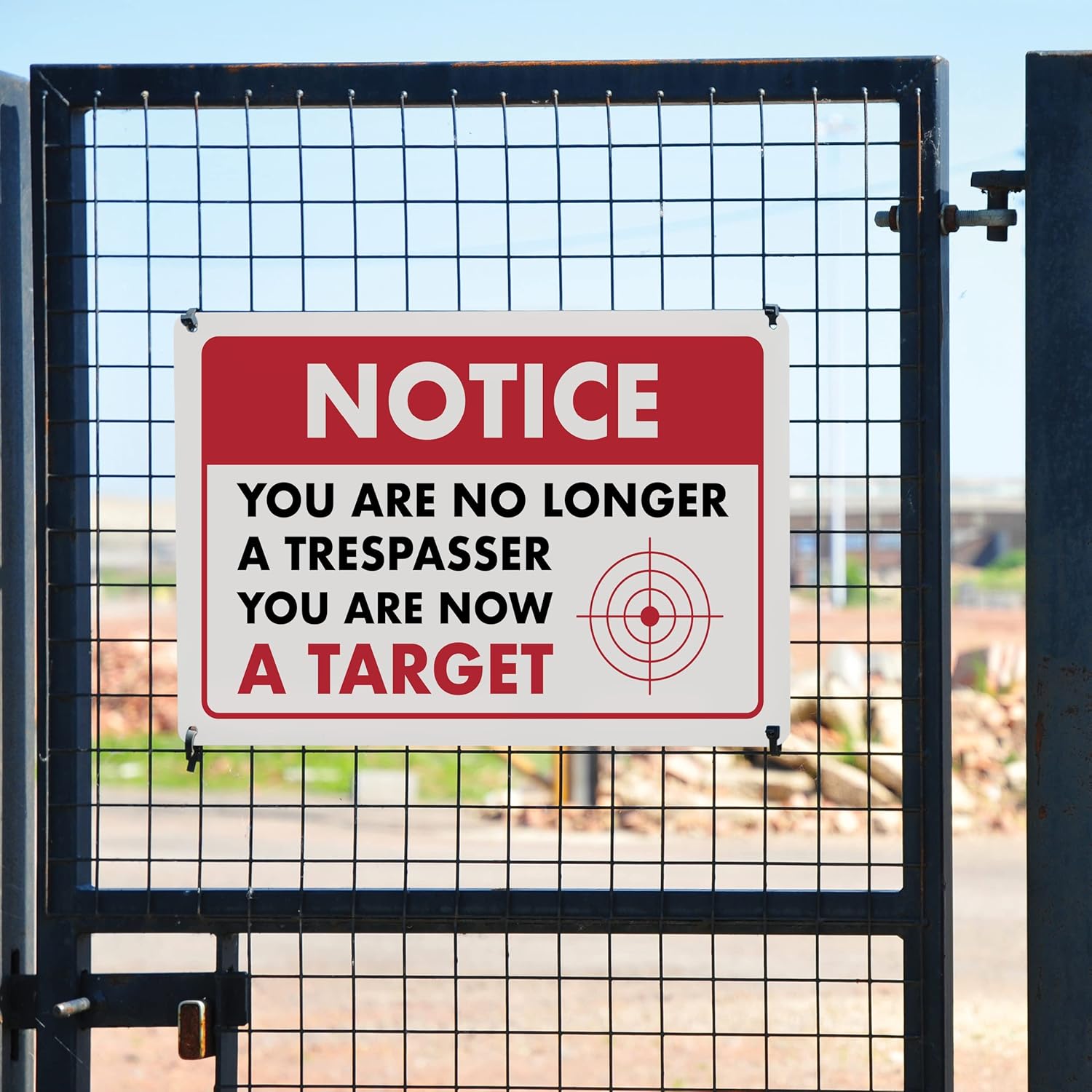 No Longer A Trespasser You Are Now A Target - Humorous Plastic Sign - 8" x 12" - Funny Warning Sign for Home Security, No Trespassing Sign - ENVISIONED Signage