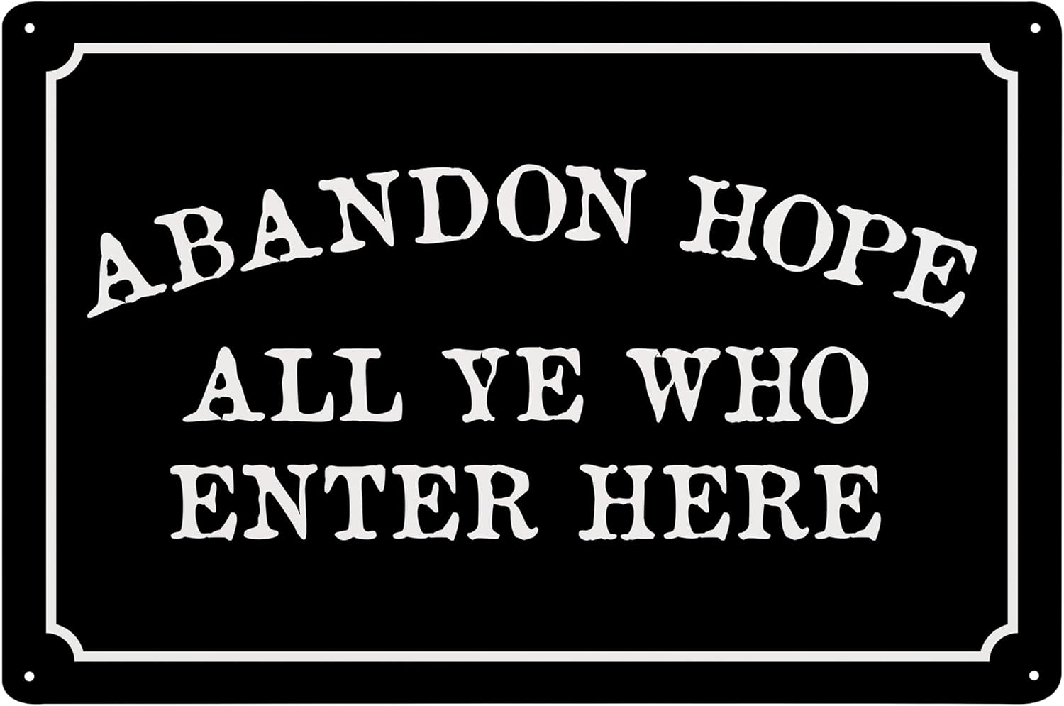 Abandon Hope All Ye Who Enter Here - Humorous Plastic Sign - 8" x 12" - Vintage Halloween Decor, Home Office & Man Cave Décor, With Holes for Easy Mounting - ENVISIONED Signage