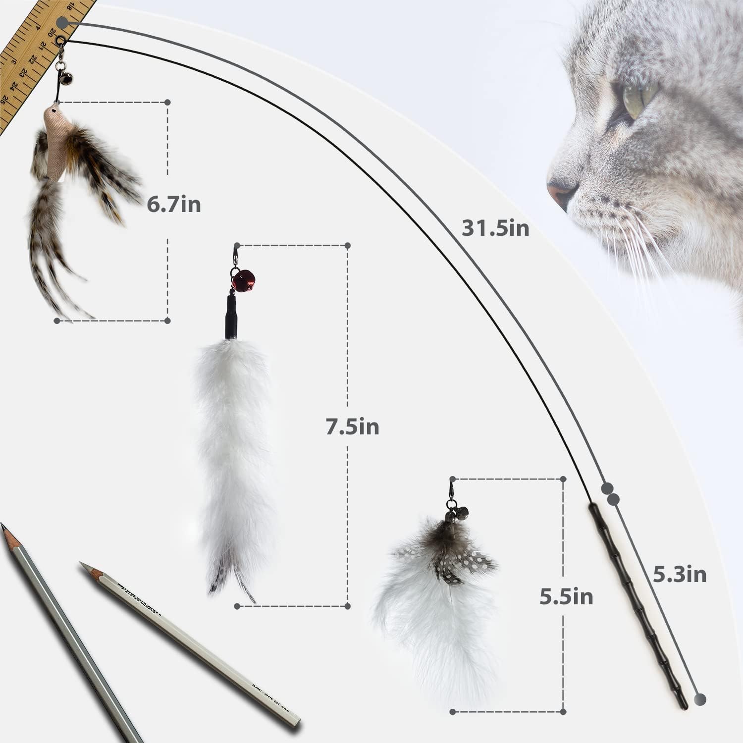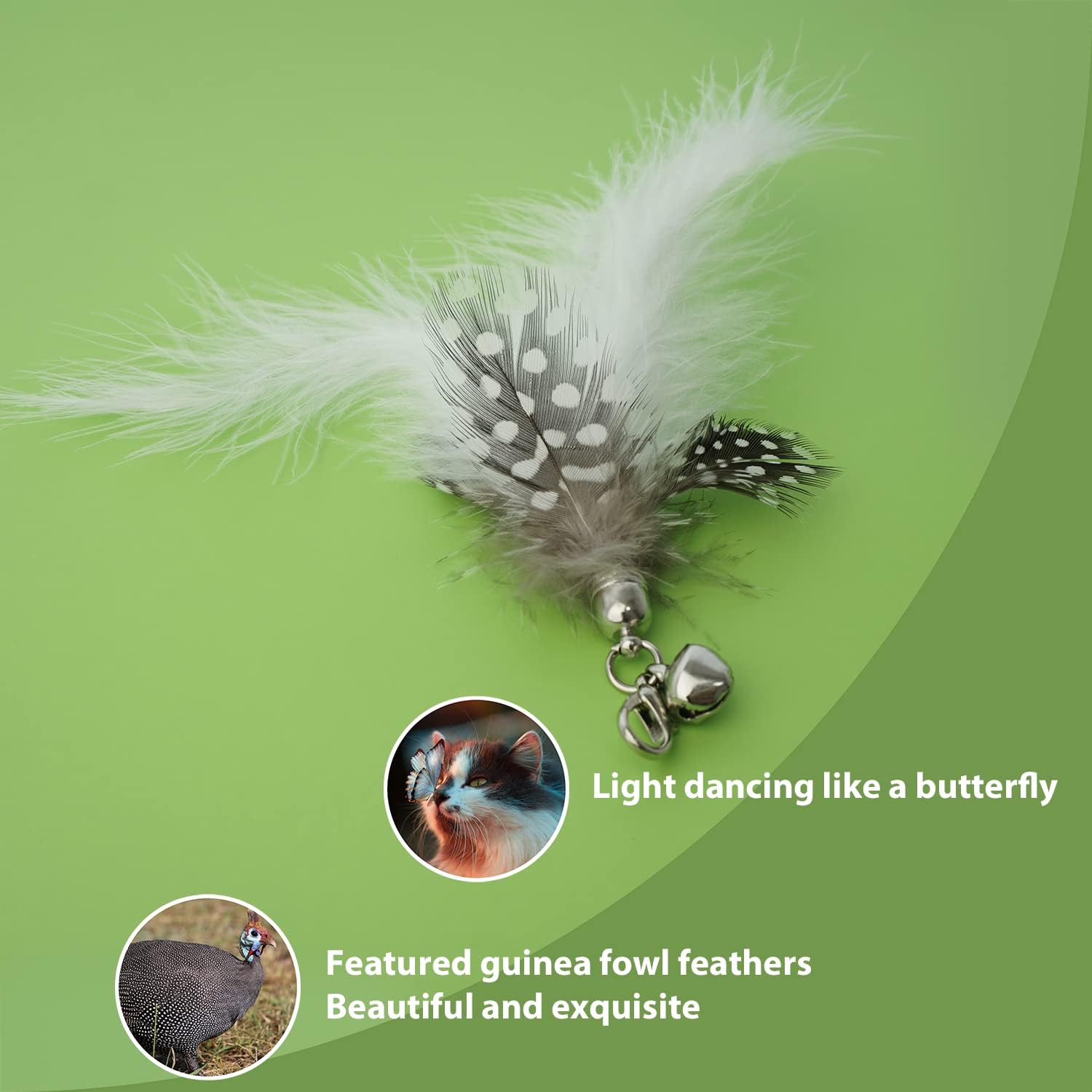 - 【High Quality】This cat wand is made of high-quality elastic stainless steel, flexible, durable and easy to control. Every feather refill is equipped with a detachable low volume call-to-action bell, which will never do any damage to the cat's hearing.