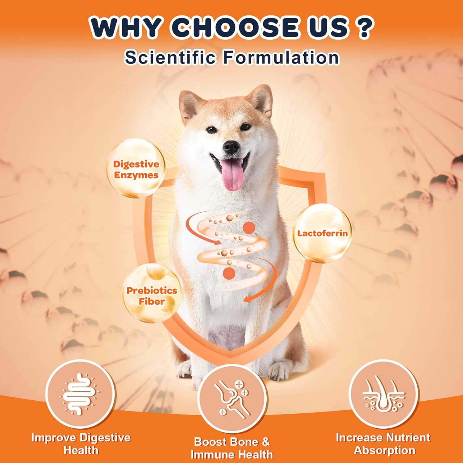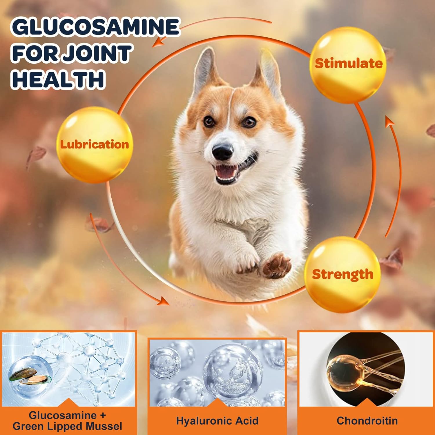- The Only Digestive Support Dog Joint Supplement: Glucosamine is a natural compound in bones and joints, but levels decrease with age. Our mobility & flexible support chews added glucosamine HCl, and premium green-lipped mussels to stimulate the growth of cartilage cells. Prebiotics and digestive enzymes are designed to help maximize the absorption rate, which increases 10X bioavailability of it. They also soothe stomach upset, reduce allergies, vomiting and constipation for dogs.