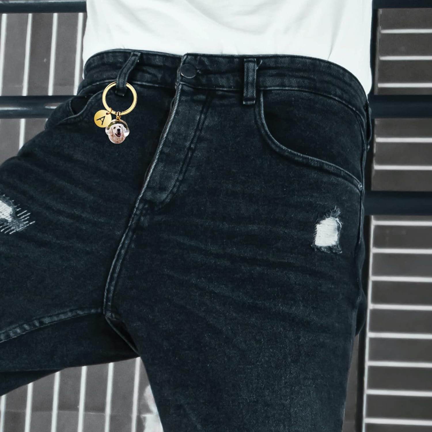 - Custom Dog Keychain: Click "Customize Now" to upload a photo of pet with a heartfelt pet quote written on the back of the keychain