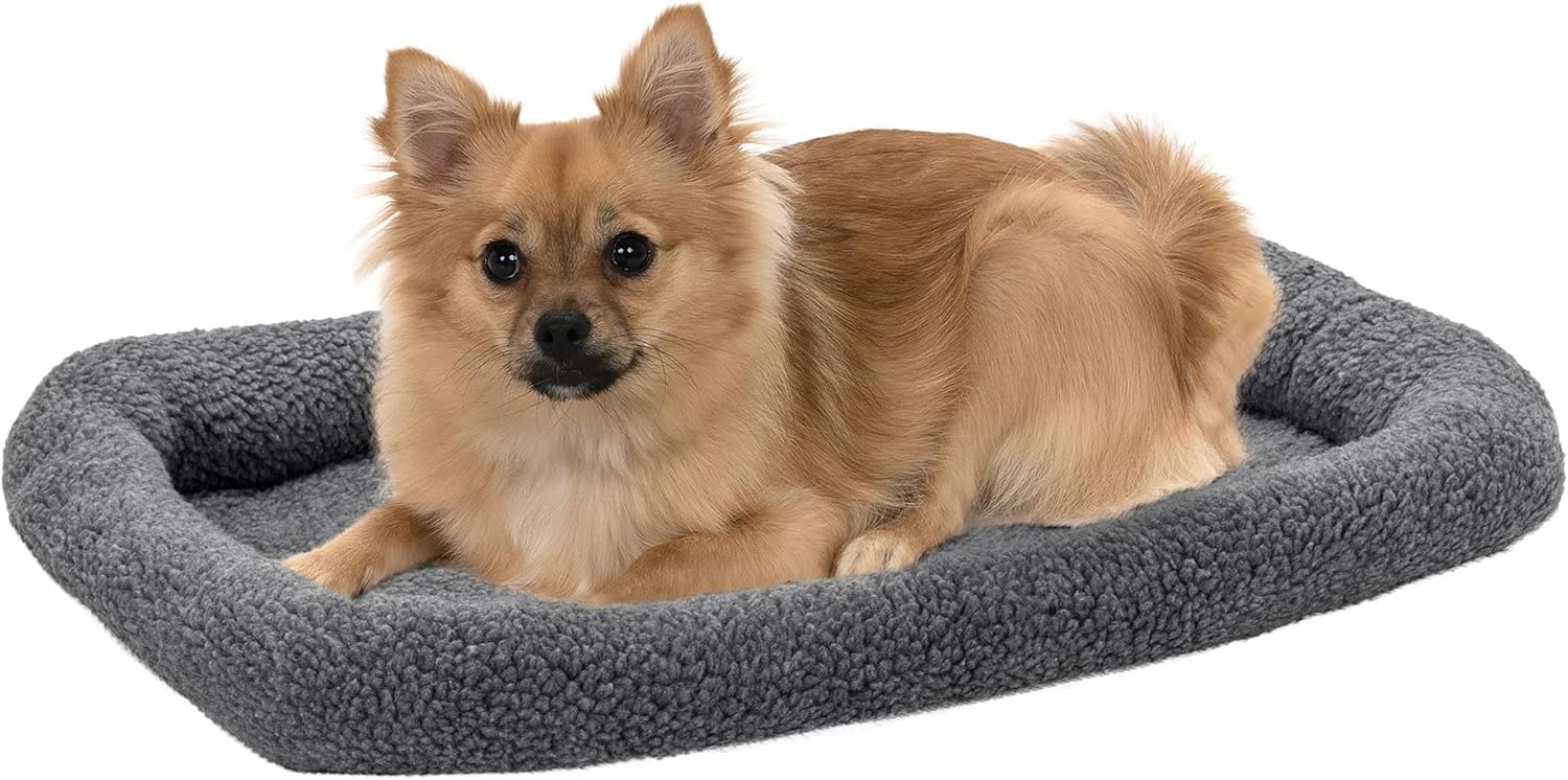 Furhaven Dog Bed for Small Dogs & Indoor Cats, 100% Washable, Sized to Fit Crates - Sherpa Fleece Bolster Crate Pad - Gray, Small