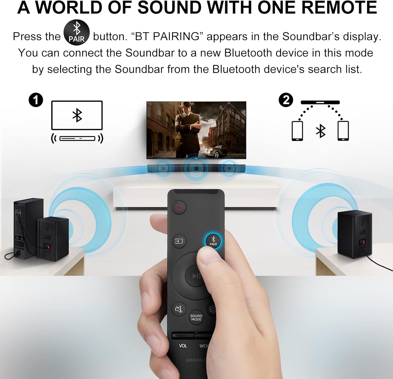 - 【Remote Applicability】New Replacement Soundbar Remote Control for Samsung Sound Bar Home Theater Audio Surround Sound Speaker System.Compatible with Samsung SoundBar Models:A-Series, N-Series, Q-Series,R-Series, S-Series, T-Series.(detail models please check the product description)
