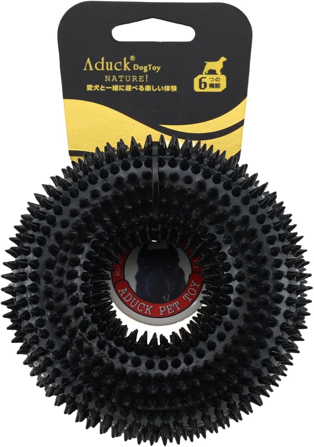 - 【MULTI-FUNCTIONAL DOG TOY】 1.Dog Chew Teething Toy: Adorable donut design with small spikes on top suitable for dogs to chew on or for oral hygiene, especially ideal for teething puppies. 2.Summer Beach Pool Floating Dog Toy: Perfect for use on the beach or in the pool during the summer, allowing your dog to enjoy the fun of water games. 3.Dog Squeaky Toy: Equipped with a squeaky sound to attract your dog's attention, adding interactive fun. 4.Dog Fetching Toy: Great for playing Fetch games with your dog, and you can even use the small spikes on top for simple grooming and massage for your dog.