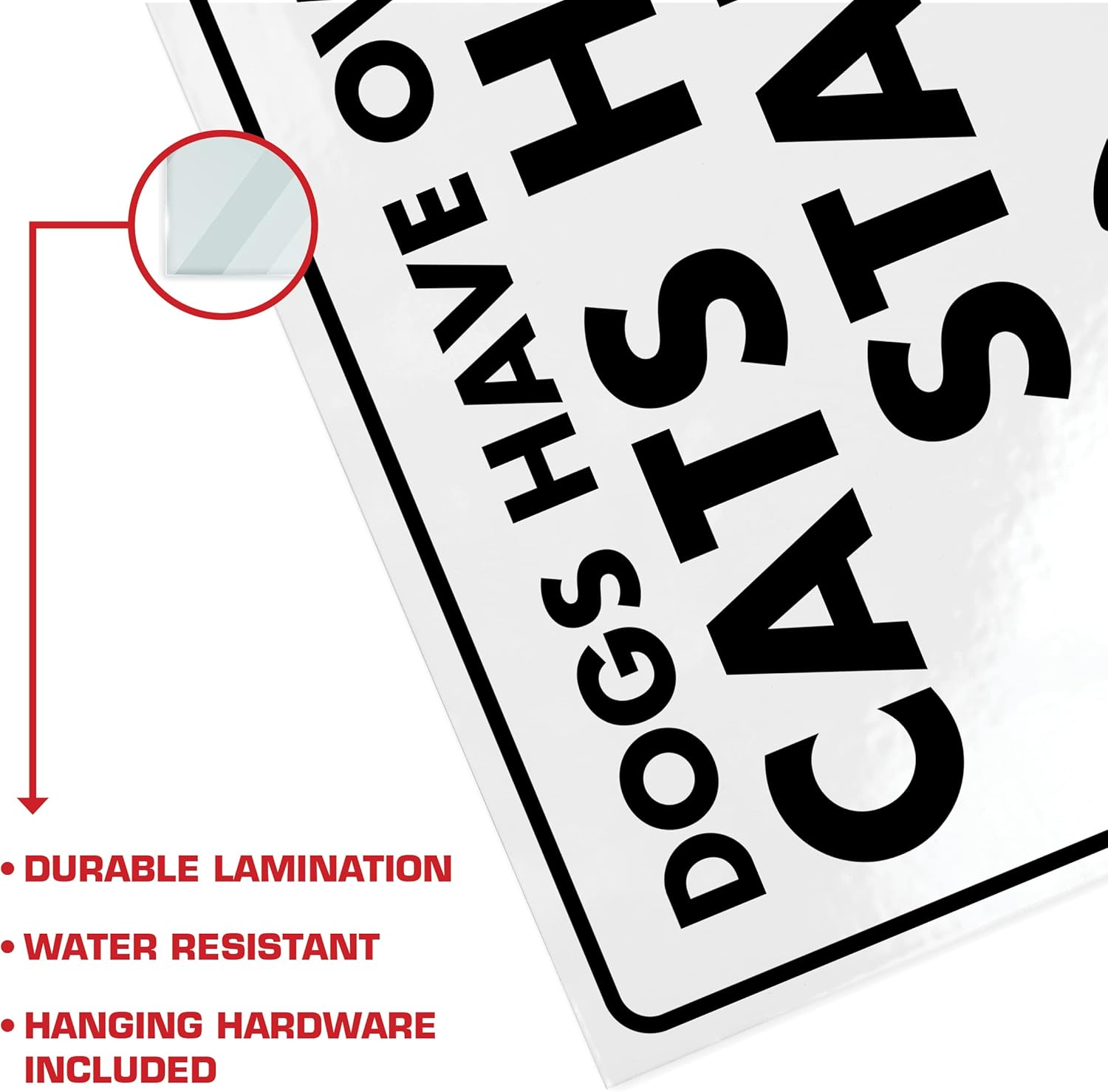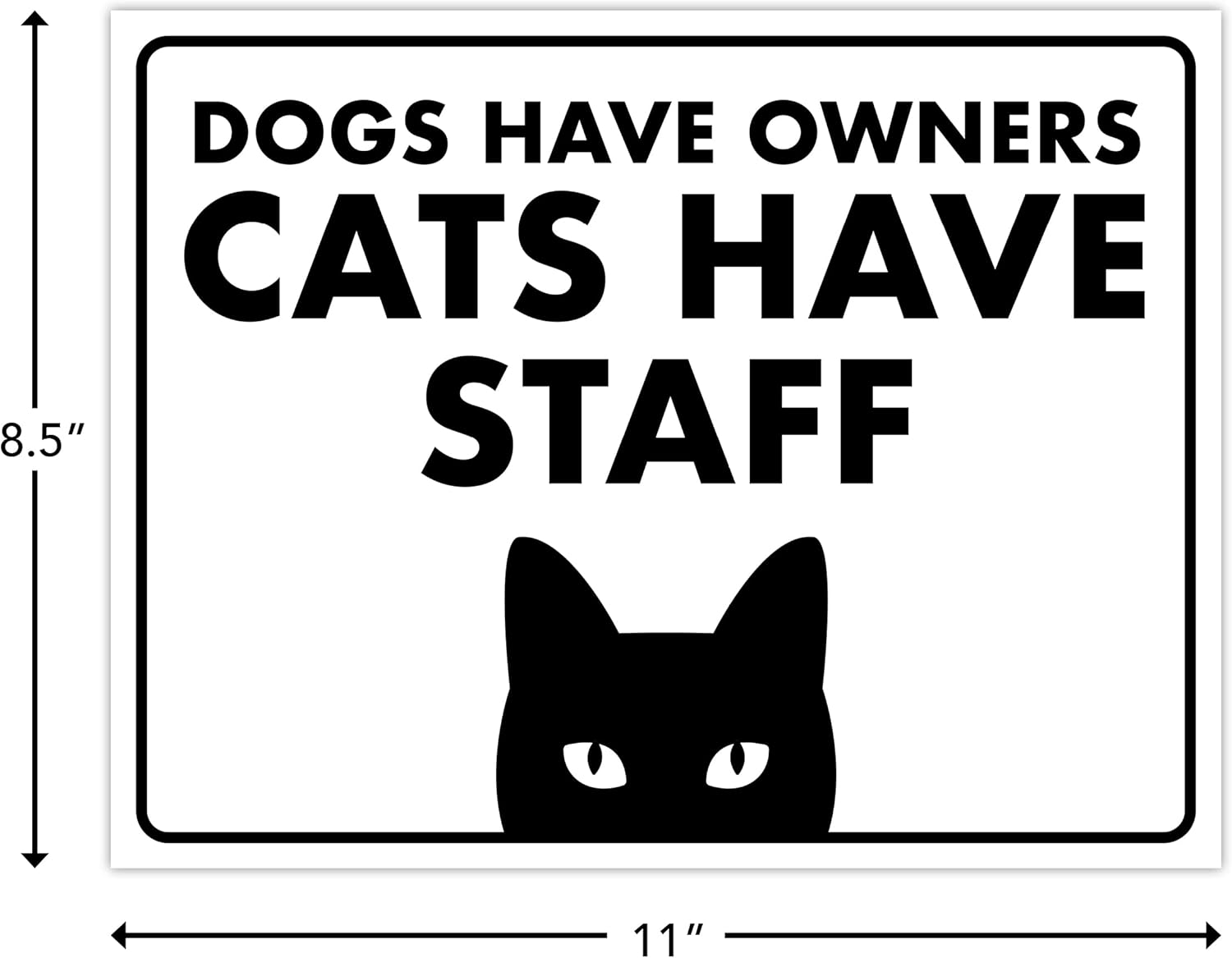 Dogs Have Owners, Cats Have Staff - Funny Cat Sign, Laminated - 8.5" x 11" - Cat Signs for Home Decor, Gift for Cat Lovers - ENVISIONED Signage