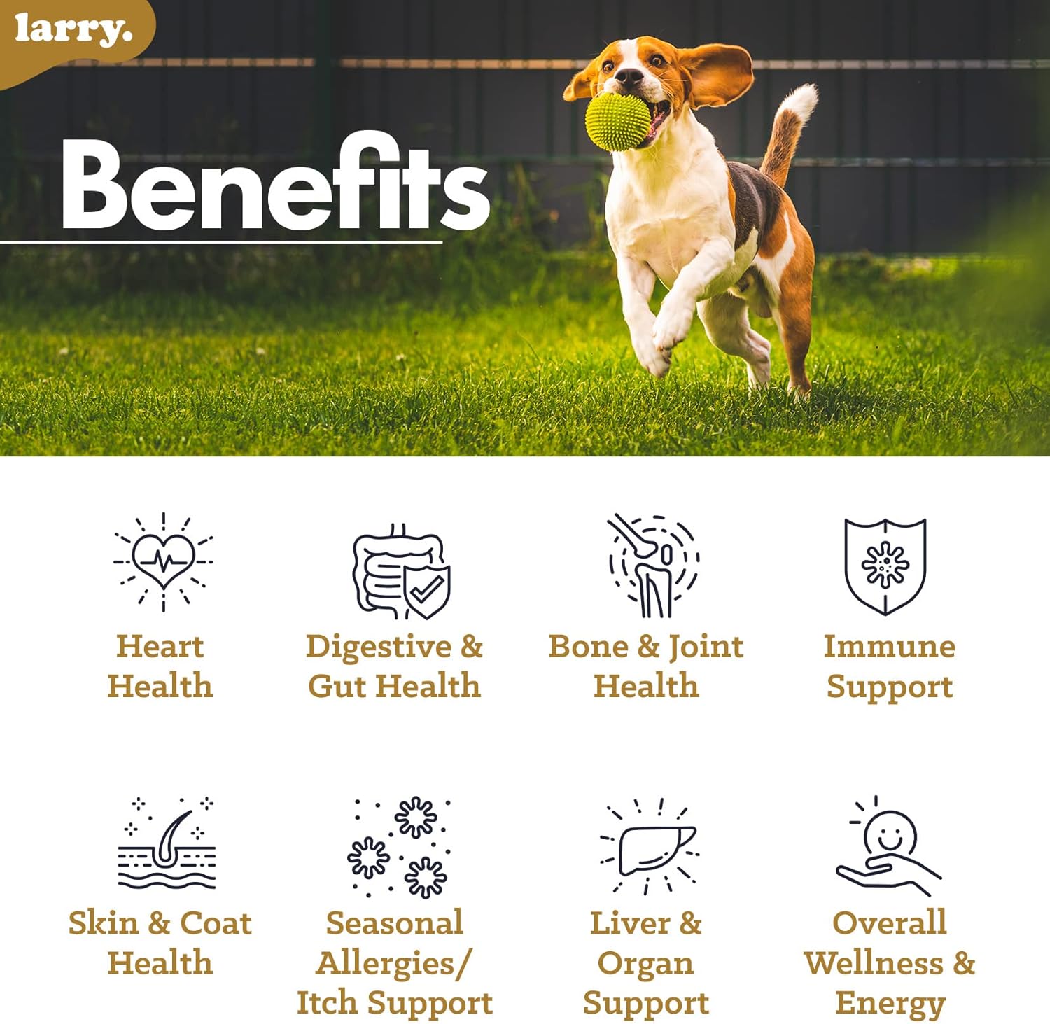 8-in-1 Multivitamin Dog Supplement by Larry | Heart, Digestion, Liver, Skin, Coat, & Joint Support Supplement for Dogs | with Vitamins, Minerals, Omegas, & Glucosamine Chondroitin | 120 Soft Chews