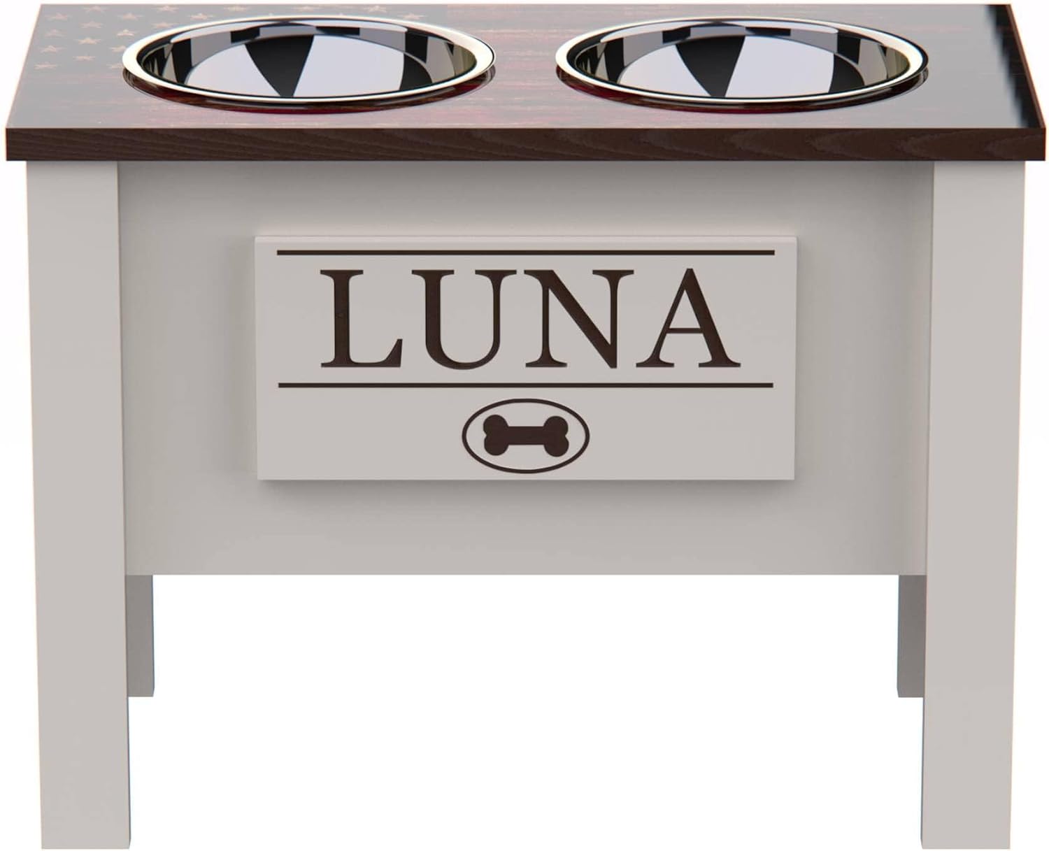 GrooveThis Woodshop - Personalized Elevated Dog Bowl Stand for Large, Medium, Small, X-Small Dogs - Stainless Steel Food and Water Bowls - Raised Dog Dish (X-Large, Flag Design)