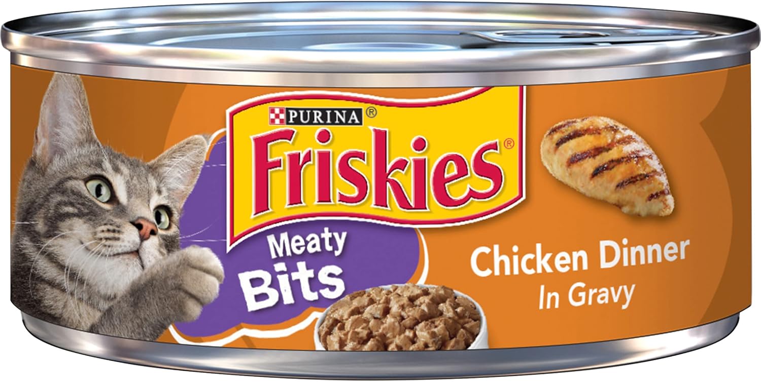 Purina Friskies Meaty Bits Wet Cat Food, Chicken Dinner in Gravy, Made with Real Chicken, Vitamins & Minerals, Canned Wet Cat Food, 5.5-Ounce Can (Pack of 12)