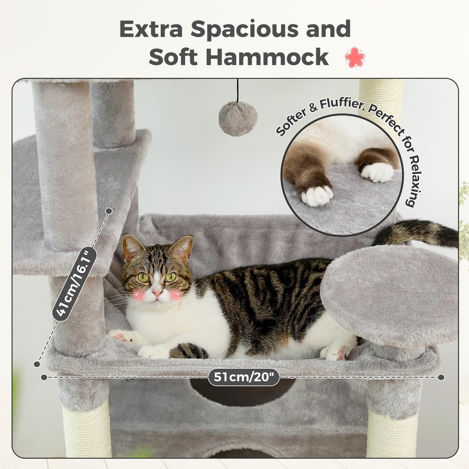 - 72" Tall, Endless Climbing Fun: With the total height of 72" in 8-level structure, the super large cat tree is perfect for 4-5 big cats who love climbing up and down together. The needs of scratching, climbing, sleeping and exercising can also be fully satisfied! Especially the unique rectangle super large cat condo and wide hammock are much larger than normal ones and perfect for cats resting together.