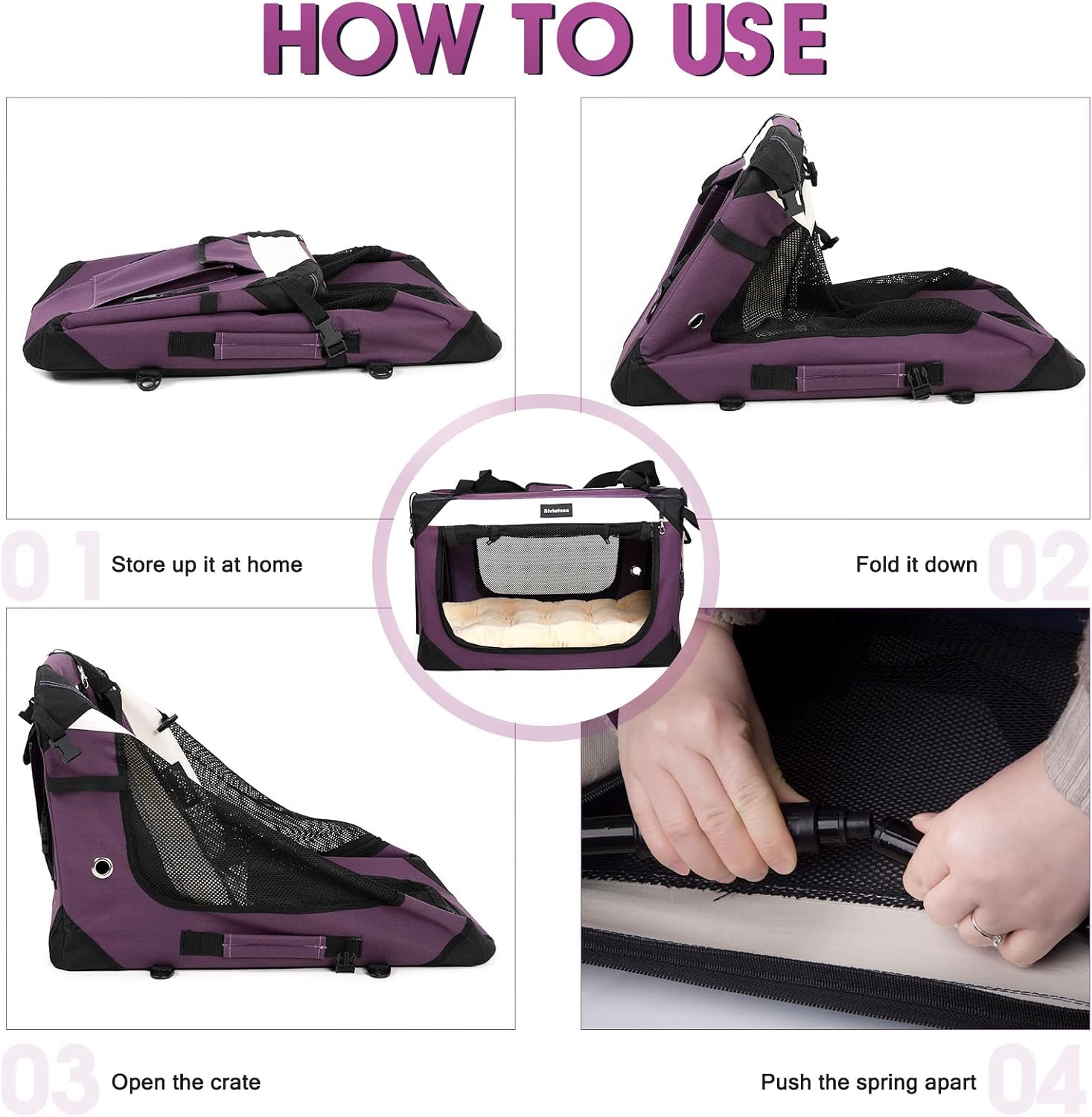 Collapsible Dog Travel Crate,Portable Soft-Sided Pet Carrier Extra Large Cat Carrier with Soft Plush Plush Mat for Indoor and Outdoor,28x20x20in,Purple
