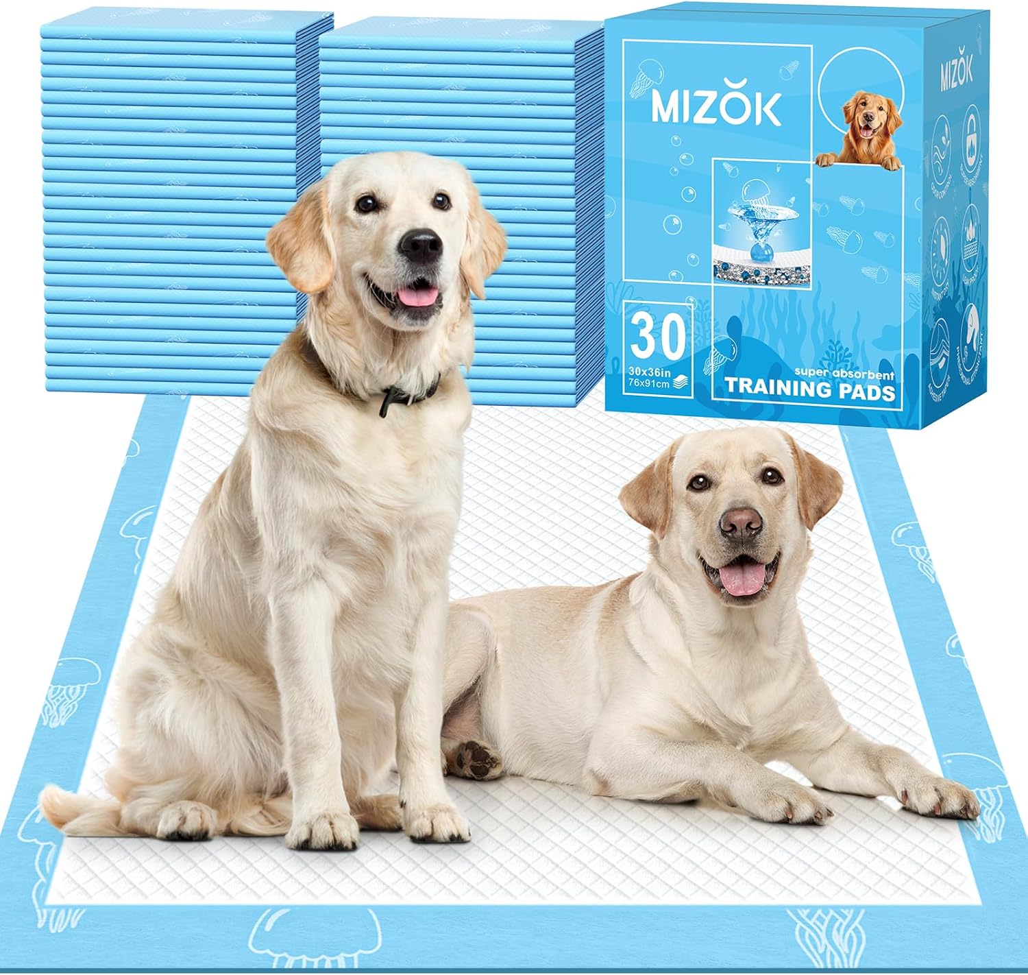 MIZOK Dog Pee Pads 30x36in X-Large Dog Training Pads Super Absorbent for Up to 10 Cups Odor-Control Marine Scented Quick Dry & Leak-Proof Jellyfish Pattern Dogs Pads, Disposable (30 Counts)
