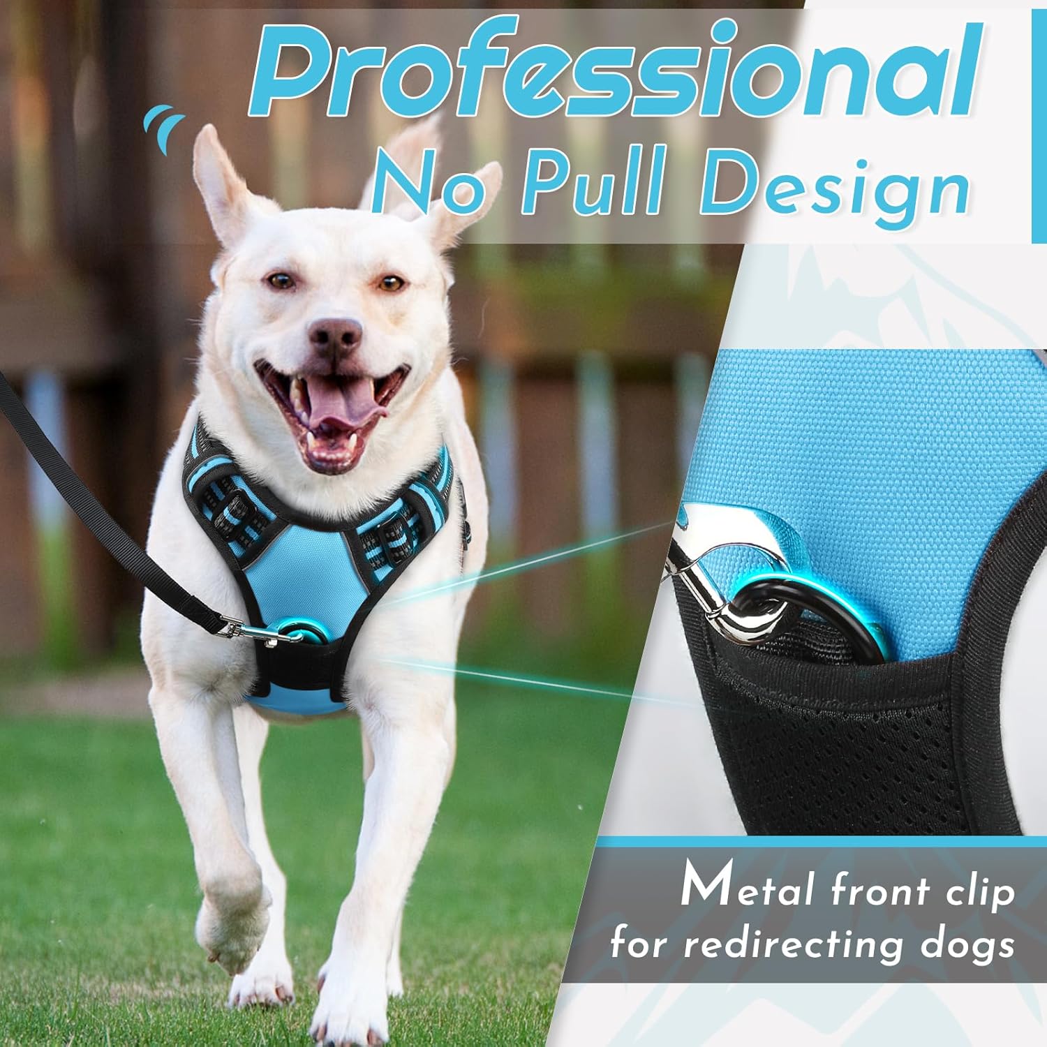Eagloo Dog Harness Medium Sized Dog, No Pull Service Vest with Reflective Strips and Control Handle, Adjustable and Comfortable for Easy Walking, No Choke Pet Harness with 2 Metal Rings, Sky Blue, M