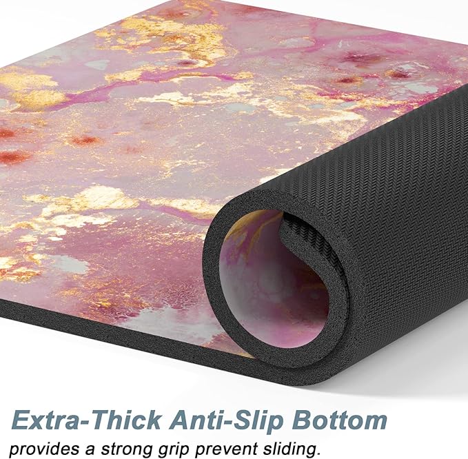 Rnivvi Dog Food Mat, 12" x 19" Absorbent Dog Cat Bowl Mat for Food and Water, Cute Anti-Slip Rubber Pet Feeding Rug Protect Floors, Puppy Placemat for Feeding & Watering Supplies, Pink Gold
