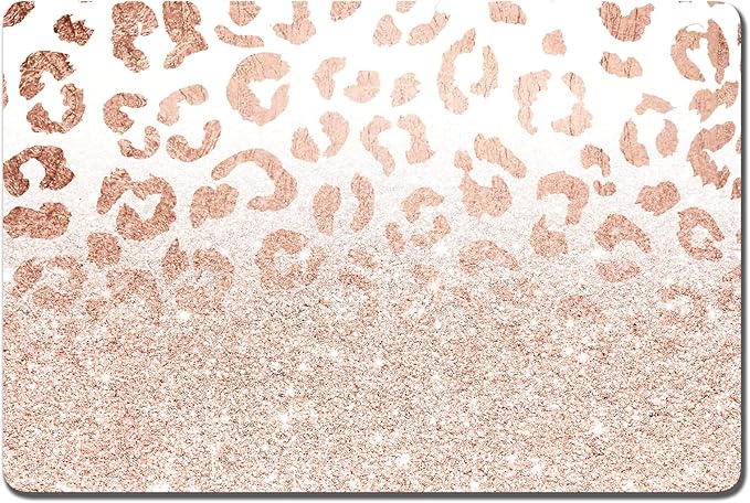 Rnivvi Dog Food Mat, 16" x 24" Leopard Absorbent Dog Cat Bowl Mat for Food and Water, Cute Anti-Slip Rubber Pet Feeding Rug Protect Floors, Puppy Placemat for Feeding & Watering Supplies, Rose