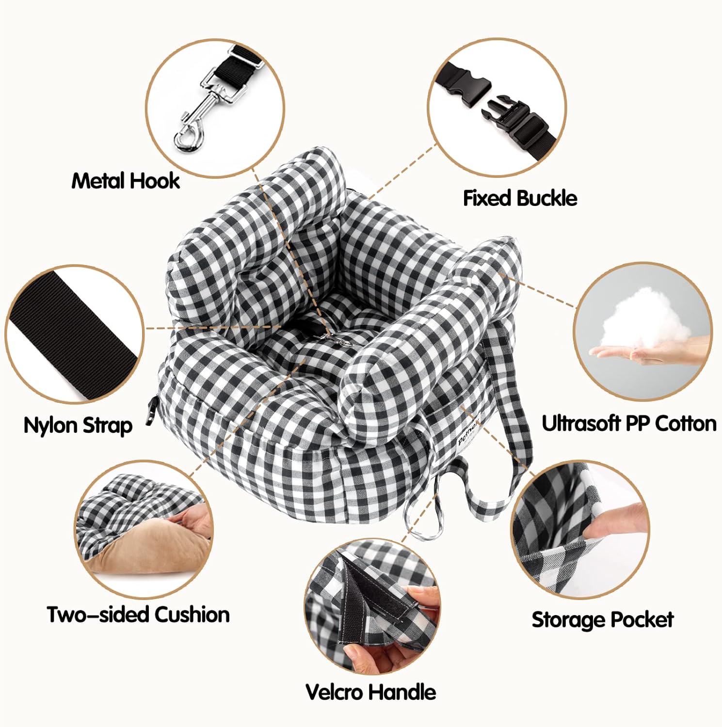 Dog Car Seat for Small Dogs, Portable Puppy Car Seat of Easy Installation, Fashionable Pet Carrier Bag with Large Pockets, Machine Washable Dog Booster Seat (Checkered Black)