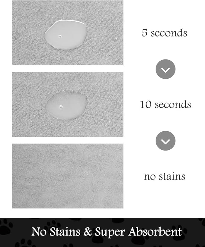 - Super Absorbent & Durable: Perfect pet supplies.This pet food mat can prevent liquid from overflowing. Super absorbent and quick-drying ability to avoid wetting pet paws even for messy drinkers. Sturdy dog & cat food bowl mat cannot be torn easily and avoid eating by mistake. Keep the pet's eating environment tidy and clean.