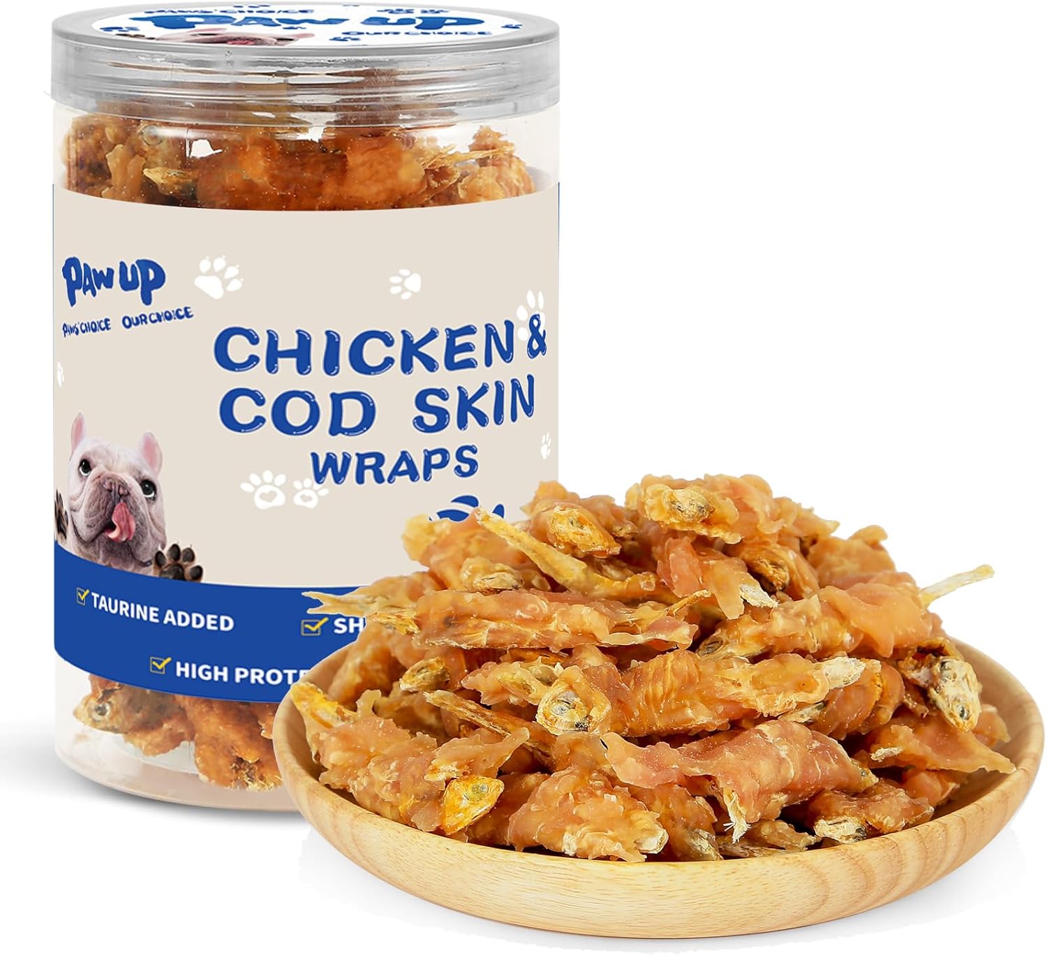 - Premium Quality Ingredients: Pawup's chicken wrapped fish dog treats are made with high-quality ingredients, including chicken, fish, and 1 % taurine. Our dog treats are healthy, gluten-free, and rawhide-free. Our dog treats are made in compliance with US food standards, ensuring a safe and nutritious snack for your furry companion