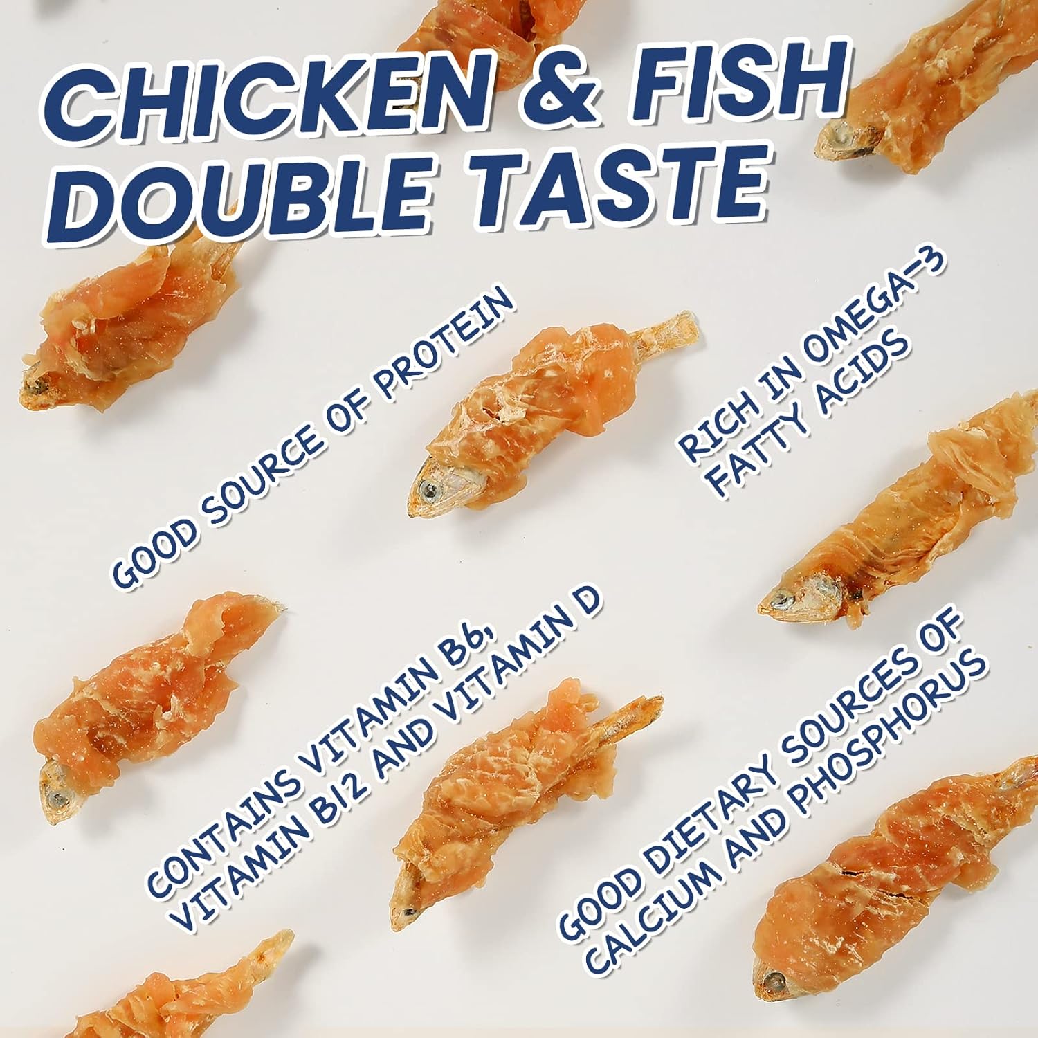 Dog Treats Chicken & Fish, High in Protein and Omega-3, for Large Small Dogs, 10.5 oz