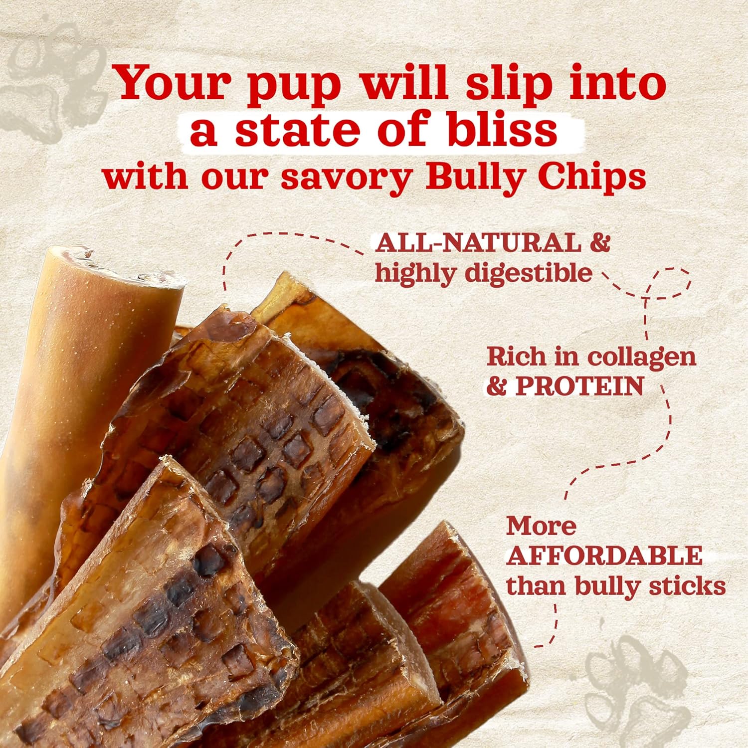 - BEST BULLY STICK ALTERNATIVE: these premium chews offer dogs all the benefits of bully sticks. Full of savory beef flavor, Bully Chips are long-lasting, wholesome, and can be used for behavior training, positive rewards, or keeping dogs calm, focused and stimulated at home or while traveling. Also, like jumbo bully sticks or pig ears, Bully Chips help stimulate jaw muscles and reduce tartar and plaque buildup to provide your pup with cleaner teeth and fresher breath.