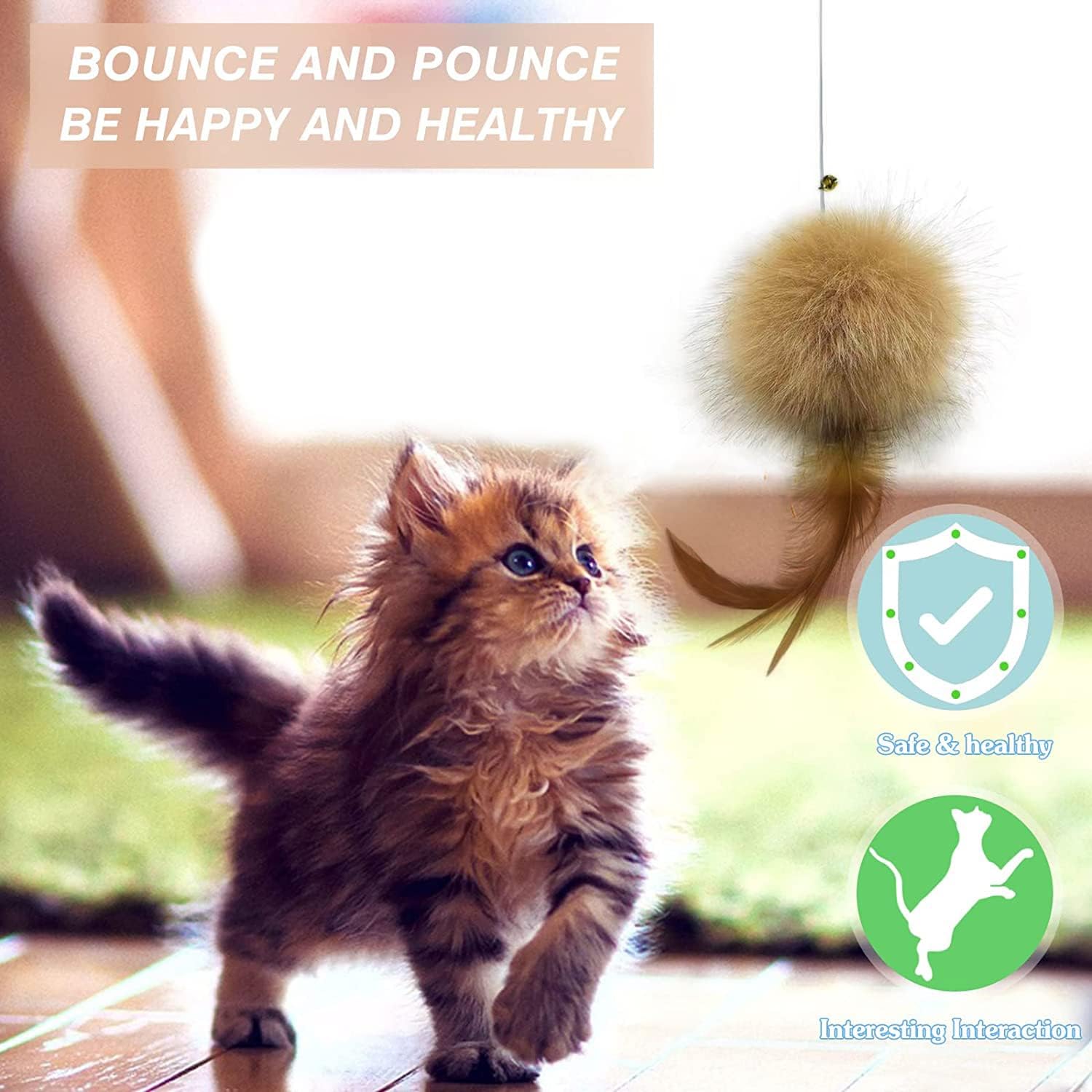 - Cat Wand Toy: These cat toys are all handmade from safe material, the cat balls are made of plush material so that these cat feather toys won’t hurt the cats’ paws, cat balls with bell inside to attract the cats’ attention when they are playing