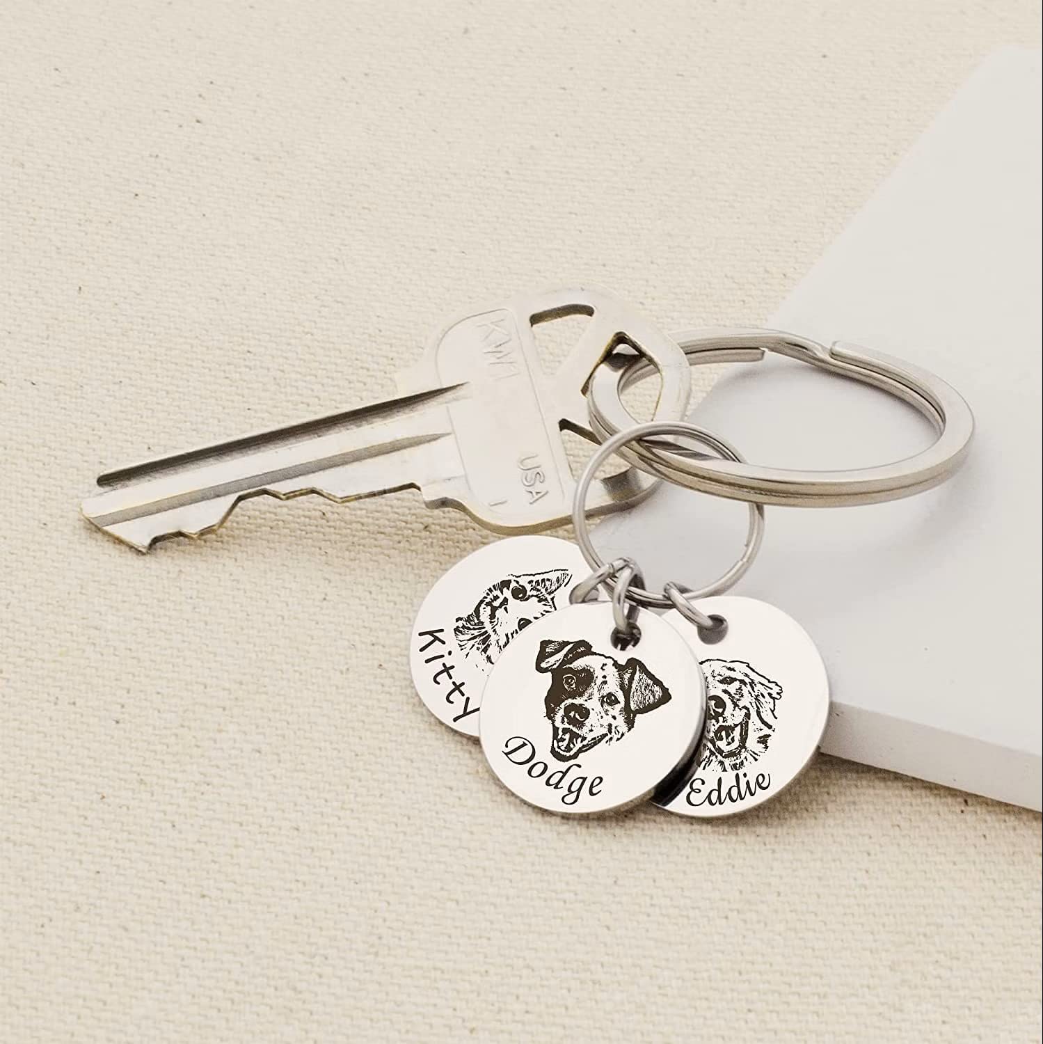 - Custom Pet Photo Portrait Keychain - This Keychain makes the perfect gift for that pet lover in your life! Personalized your Keychain with a portrait of your pet’s face with their name underneath. The Delicate yet stunning design makes it perfect for everyday wear.