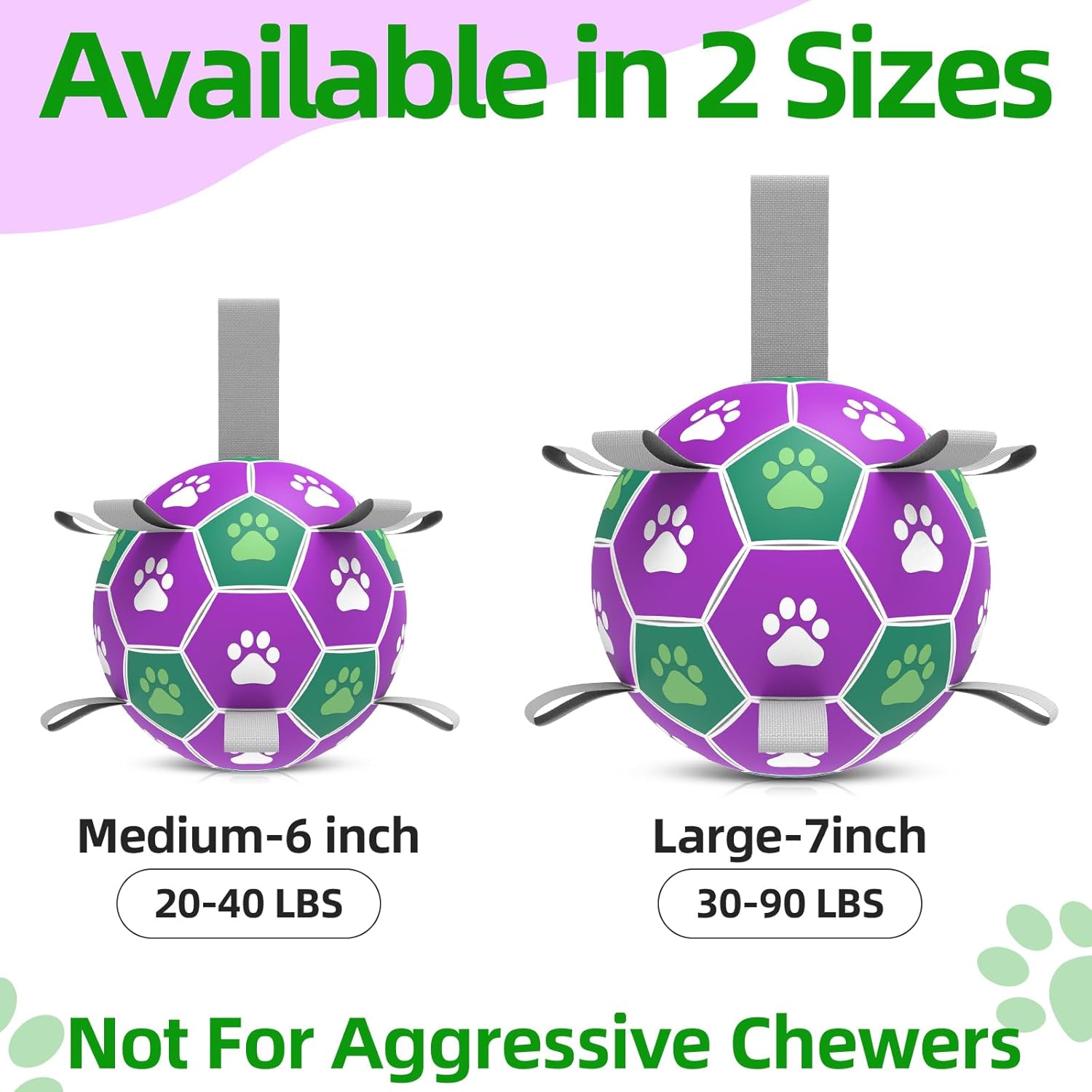 - 【 Interactive Dog Toys with Strap】 Build a stronger bond with your furry friend and keep them entertained for hours with our dog soccer ball! Featuring straps that make it easy for dogs to pick up and retrieve during playtime or training.