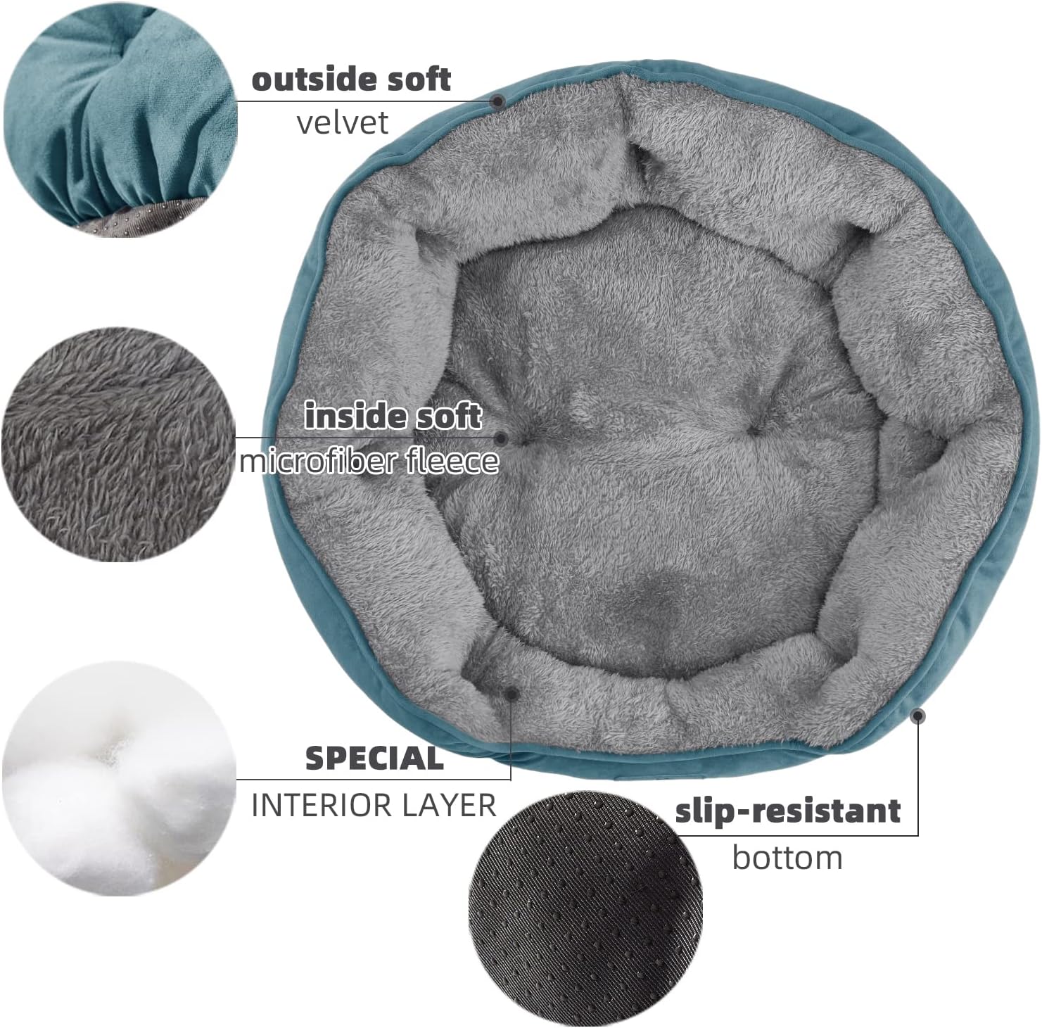 - Non Slip Bottom: Dotted with flat oxford bottom helps keep the bed in place on smooth surfaces no matter how much your pet moves around