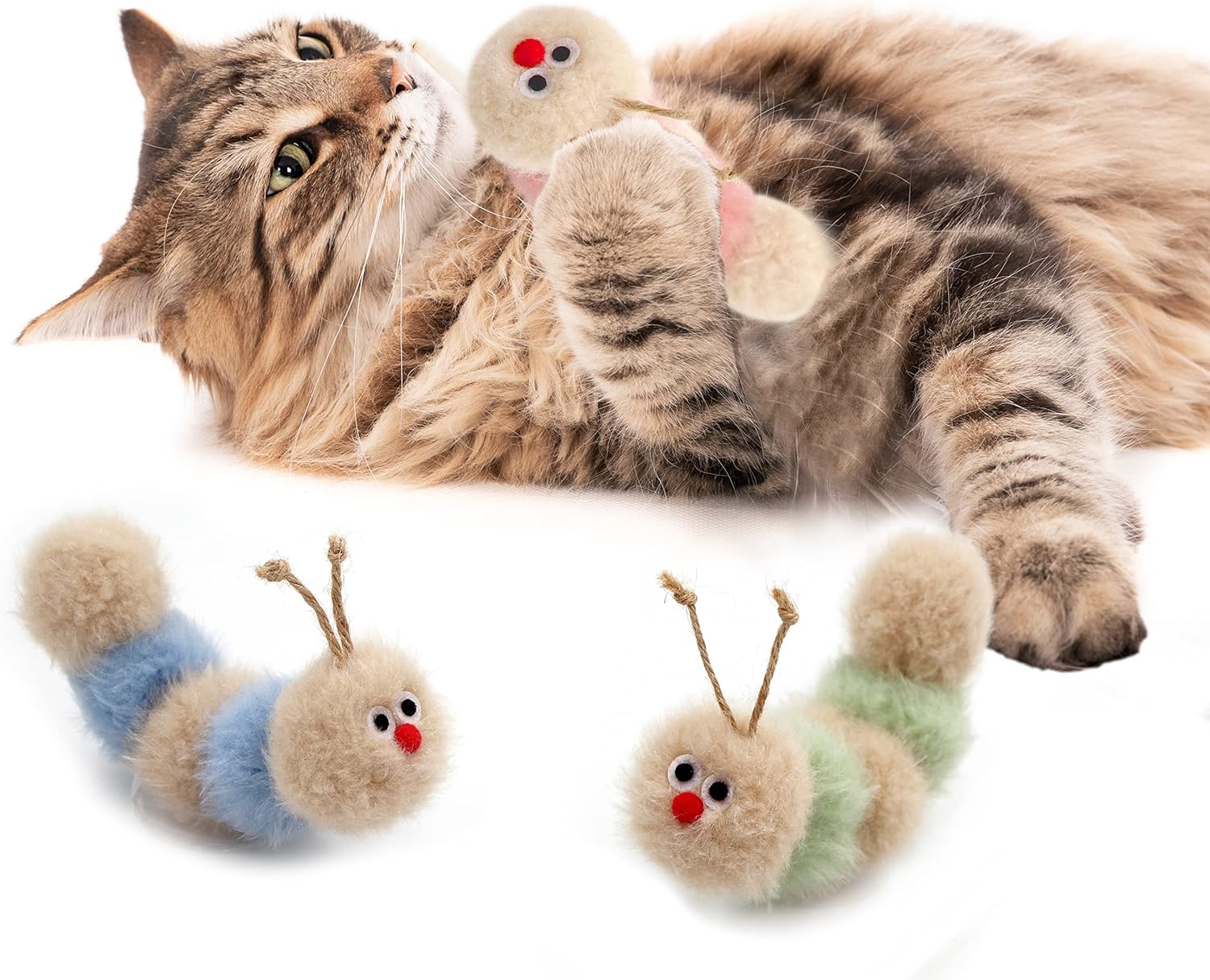 - 【Cute & Funny Cat Toy】These toys are made in the shape of caterpillars. The fluffy texture and curly shapes attract cats to chase, bat and carry. Playing the toy, you can increase the interaction between you and your pet.