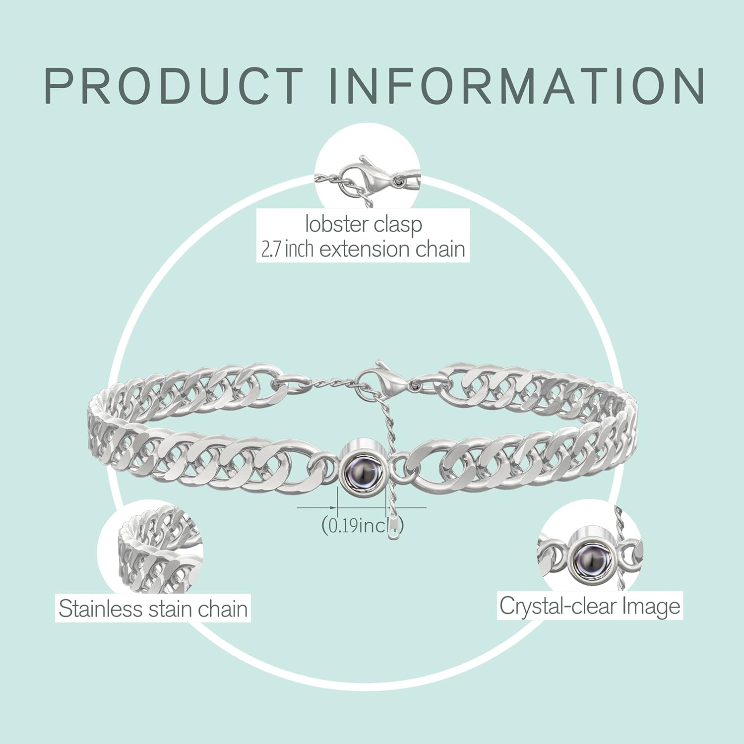 - 📷 Capture cherished moments of your loved ones and pets with a personalized engraved project stone that only you can see and share. Our bracelet lets you personalize any photo you like( mother, father, grandpa, grandma, boyfriend, girlfriend, BFF, friends, pets, someone you like, respect, or have gone...)