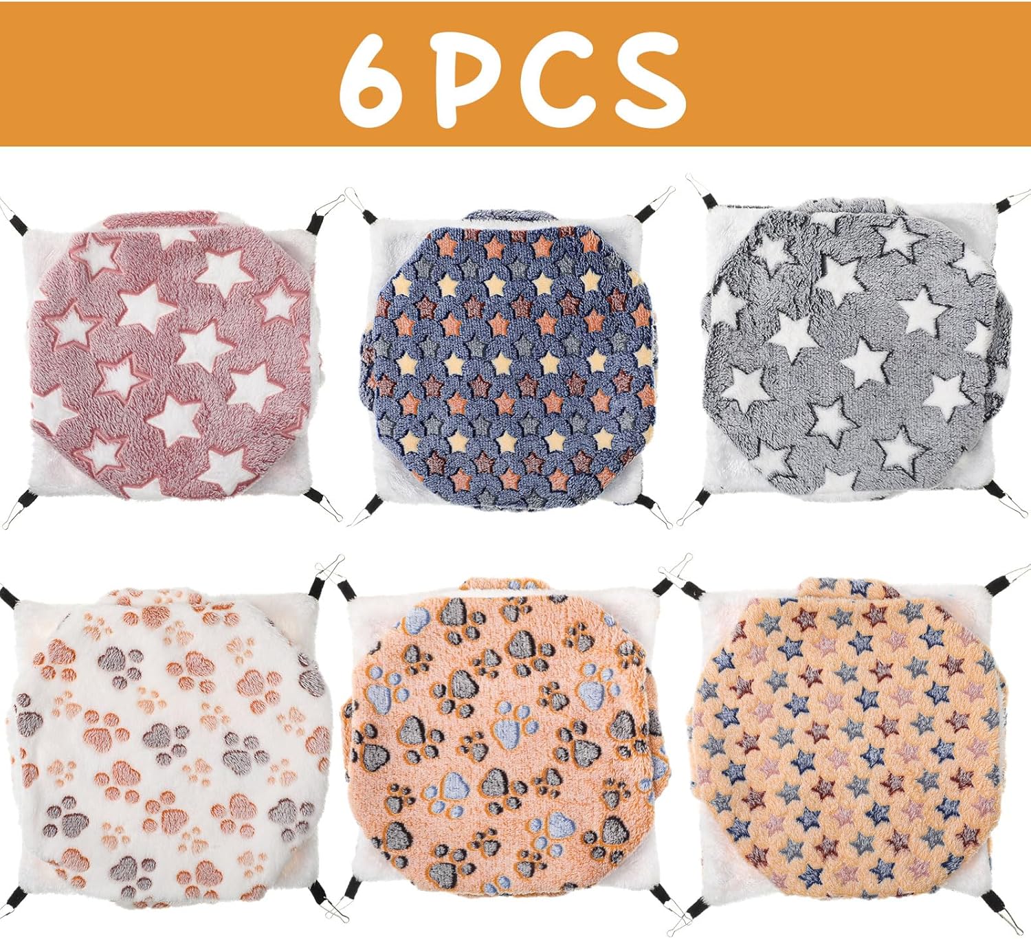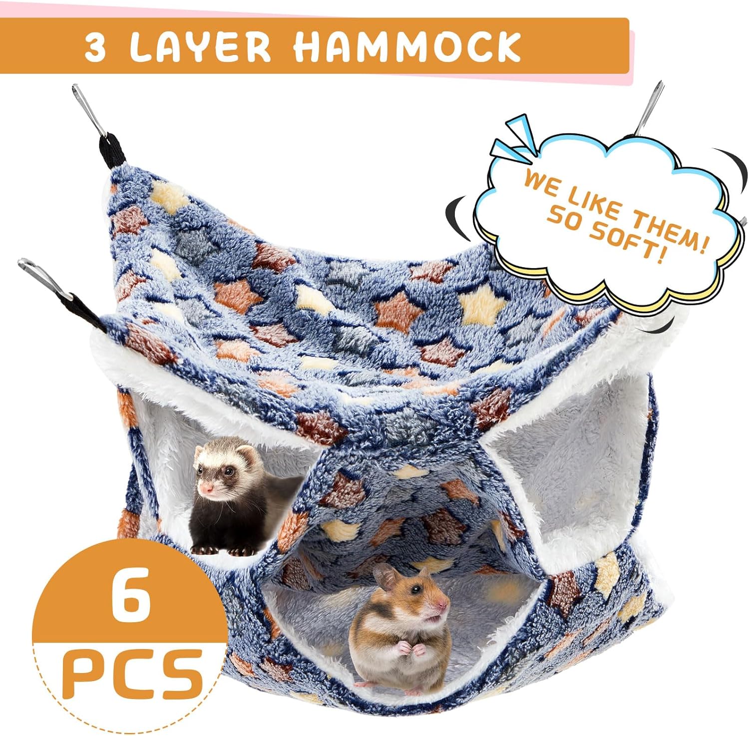 Sadnyy 6 Pieces Guinea Pig Rat Hammock Three Layer Ferret Bed Small Animal Hanging Pet Cage Hammock for Chinchilla Rat Sugar Glider Squirrel Reptiles(Cute Pattern)
