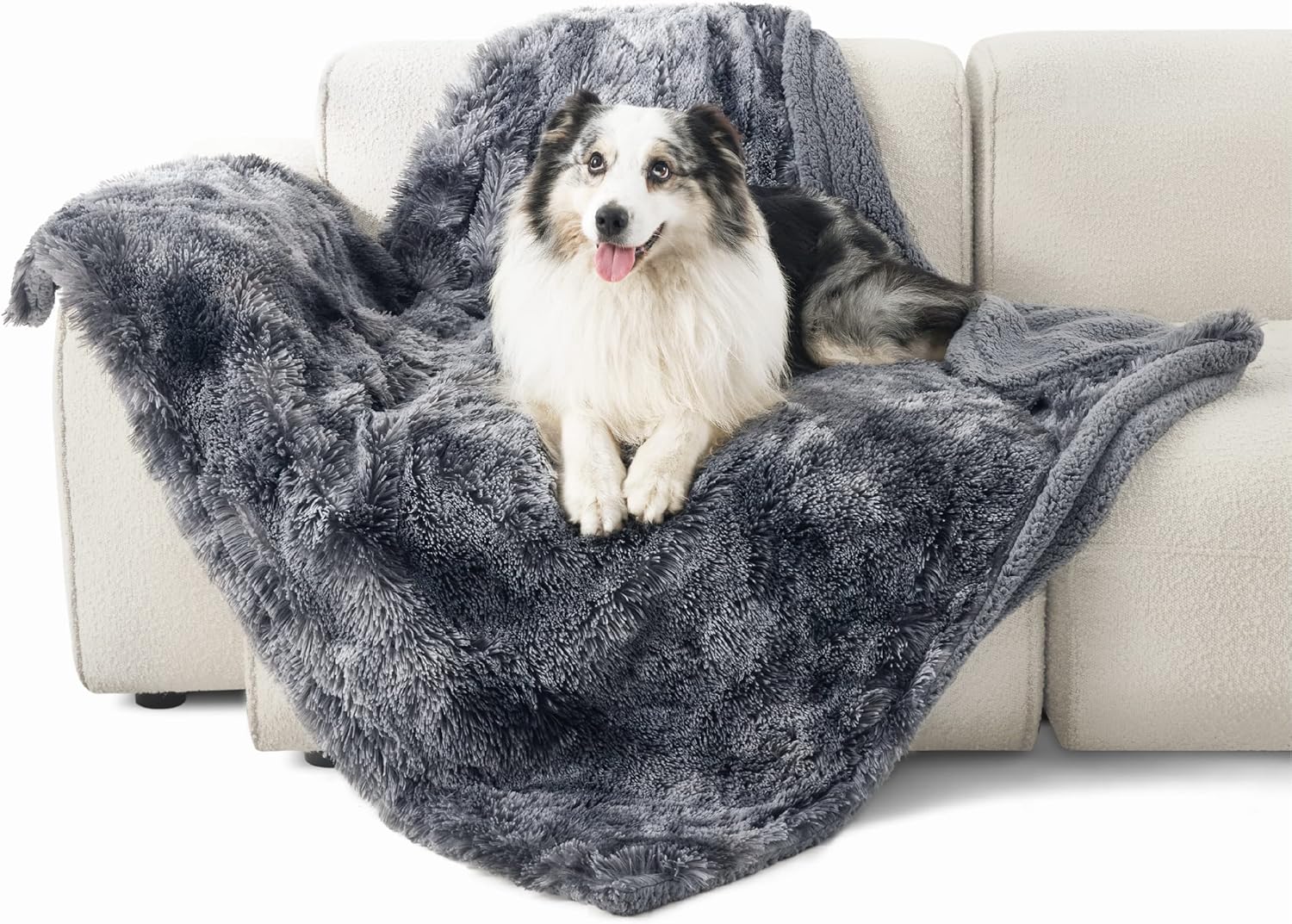 Bedsure Waterproof Dog Blankets for Large Dogs - Cat Blanket for Couch Protector Washable Long Faux Fur,Calming Soft Reversible Throw Furniture Protection for Puppy Pet, 50"x60", Tie-dye Grey