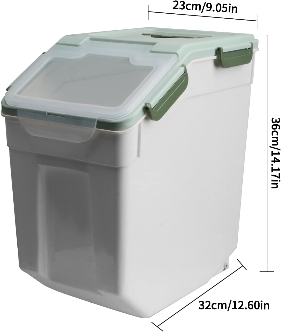 Airtight Dog Food Storage Container 15 lbs Capacity, Large Pet Food Storage Bin, Plastic Cat Food Box with Scoop and Measuring Cup (Green)