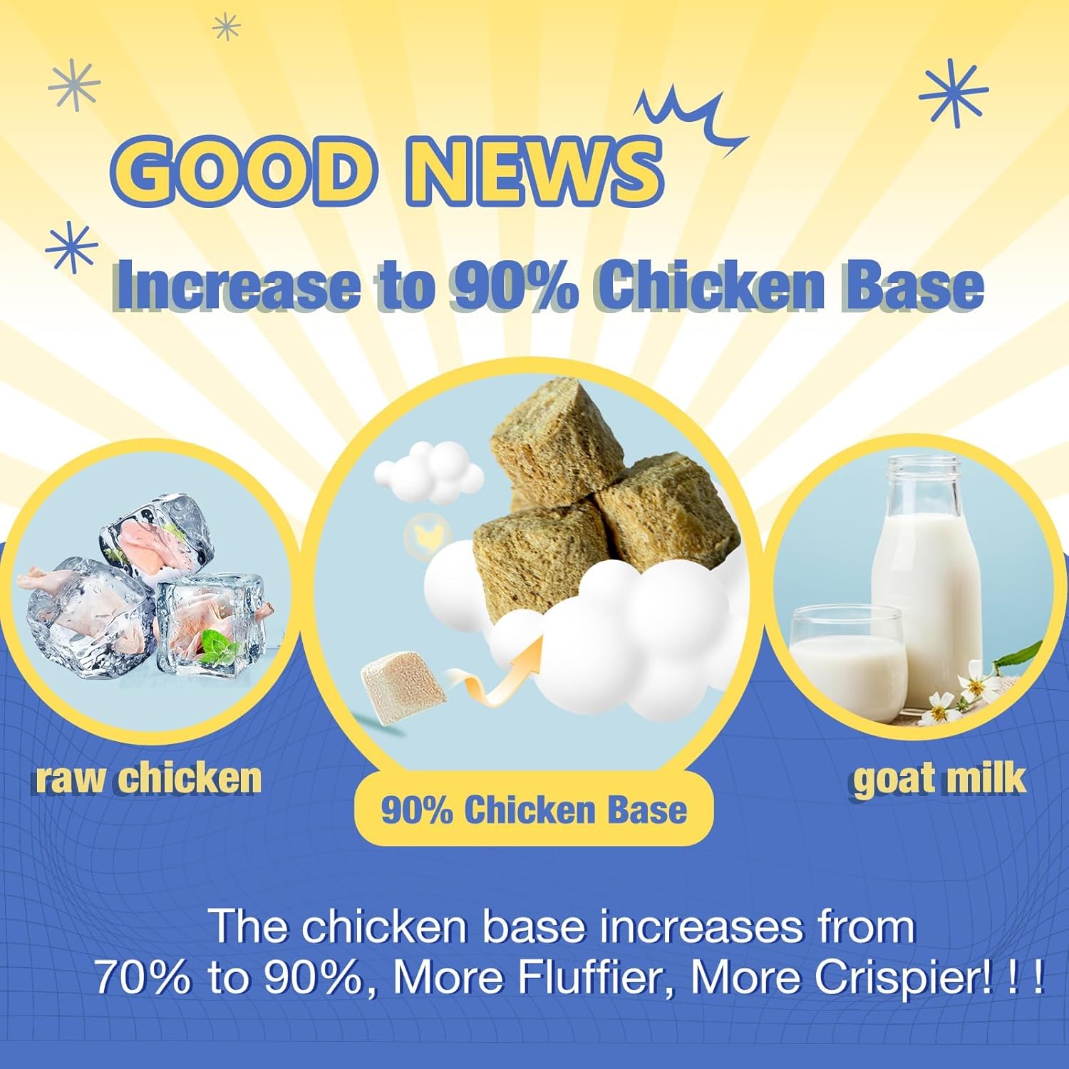 - FREEZE-DIRED CHEWS: In some dog vitamins and supplements, these vitamins and minerals are degraded in preparation and storage, we have adopted freeze-dried to preserve the original nutritional value to the greatest extent, which is where we are superior to other brands. We add raw chicken and goat milk to provide the best quality ingredients and taste. TIPS: Due to freeze-dried chews are crunchy. If is a young dog or an old dog, it is recommended that you soak the chew in water for two minutes.