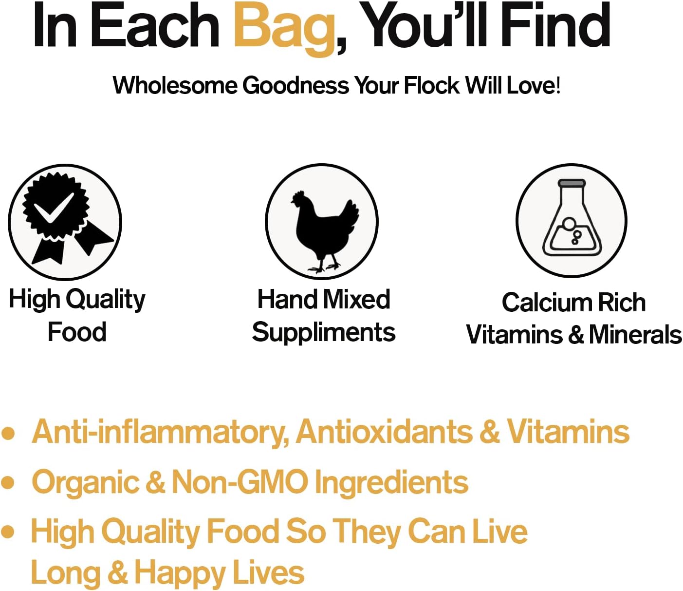 - Resealable Bag - The blend can be removed effortlessly thanks to the convenient, reliable, and resealable zip-top bags. One bag contains supplements in the form of treats for your chickens & ducks to be added to their regular feed.