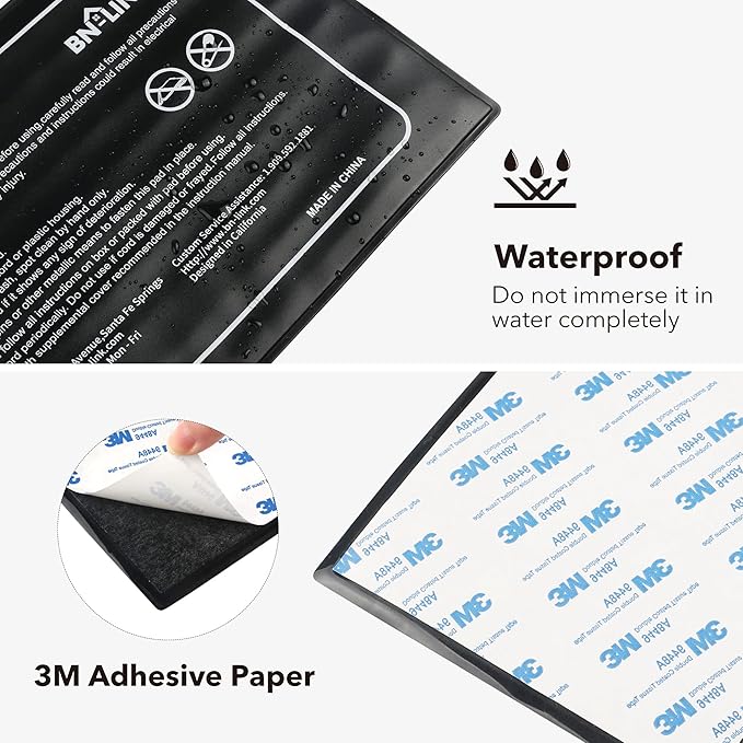 - DURABLE AND FLEXIBLE: Not only is the BN-LINK Under Tank Heater built to last with its durable, water-resistant material, the Under Tank Heater also remains elastic and flexible. It also has a strong adhesive grip and is waterproof for easy cleaning.