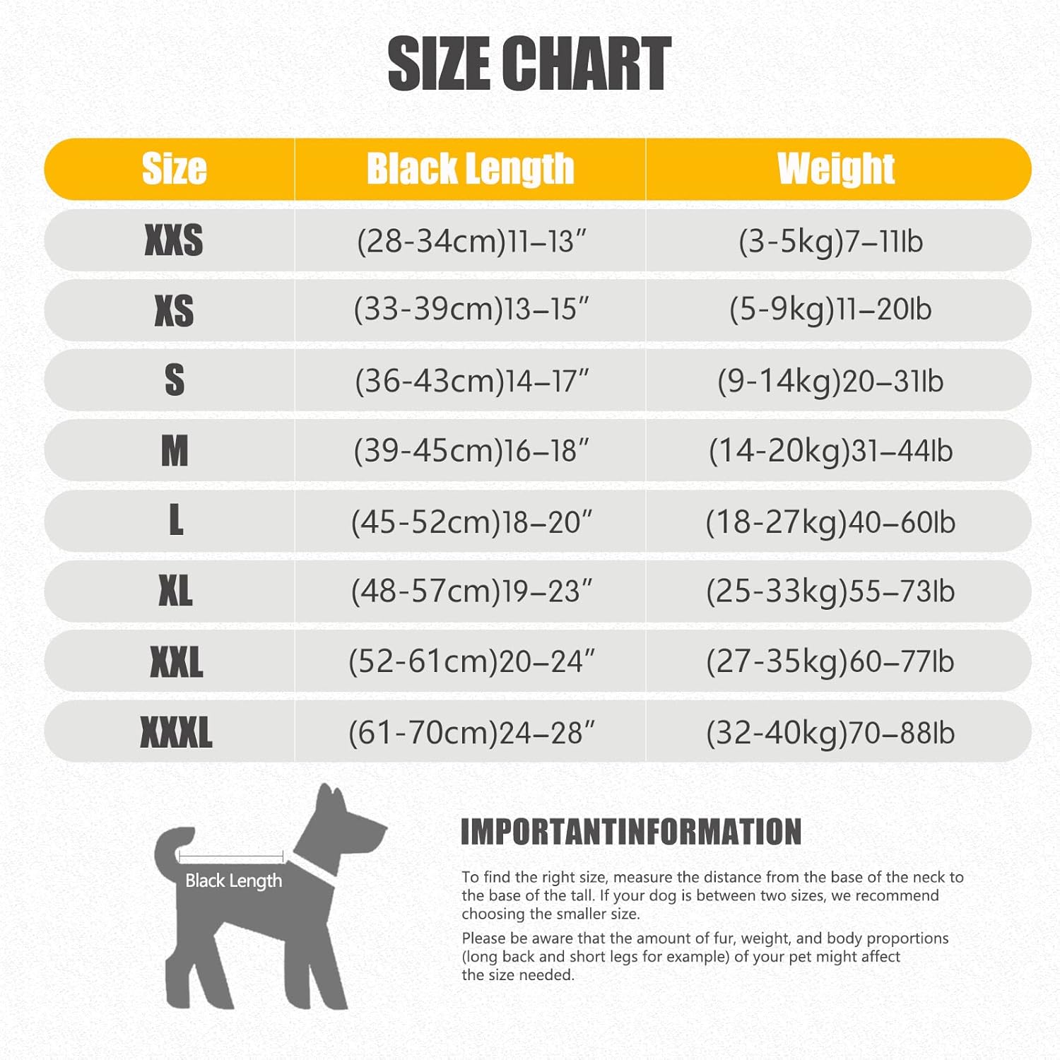 - Quality Assurance : Please measure your pet carefully and refer to the size chart before ordering, If there any problem with the Size or quality of the item, we support Free Return or Replacement with No Reason.