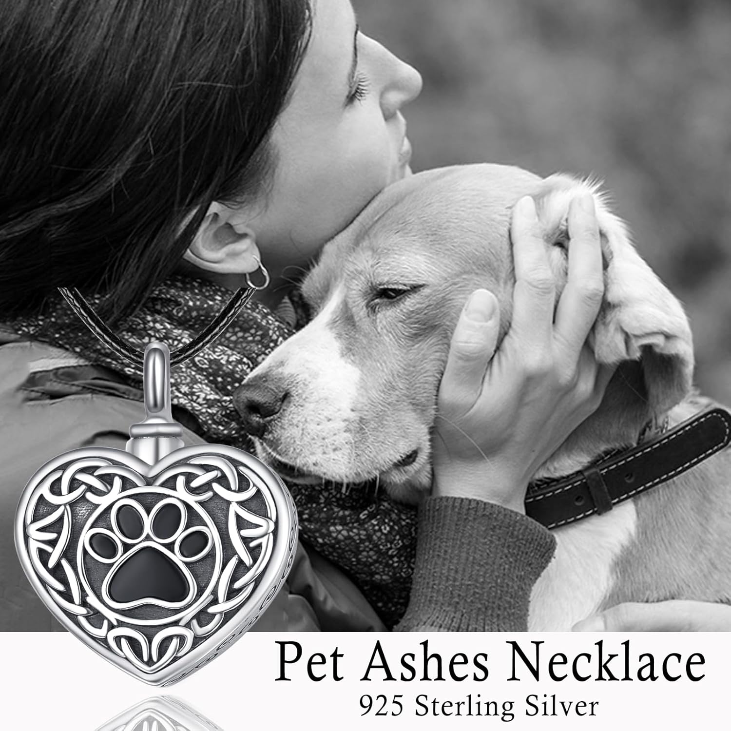 Dreamboat Pet Urn Necklace for Dog Cat Ashes 925 Sterling Silver Paw Print Cremation Keepsake Pendant Celtic Knot Memorial Jewelry Gifts for Women Men