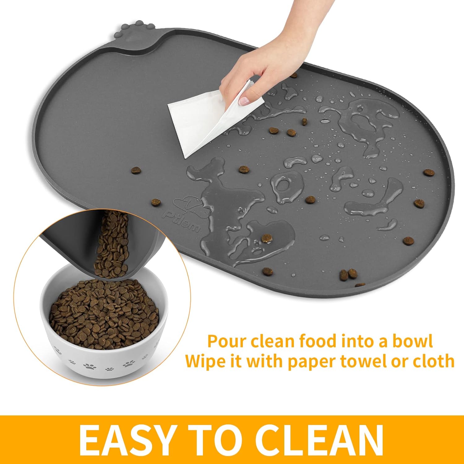 - 100% Waterproof and Anti-Slip: Our dog bowl mat with high-lip edges. Leak-proof pet placemats can prevent food and water overflow, and protect the floor. Prevent pets from eating contaminated food. Non-slip silicone mat keeps the bowl in place.