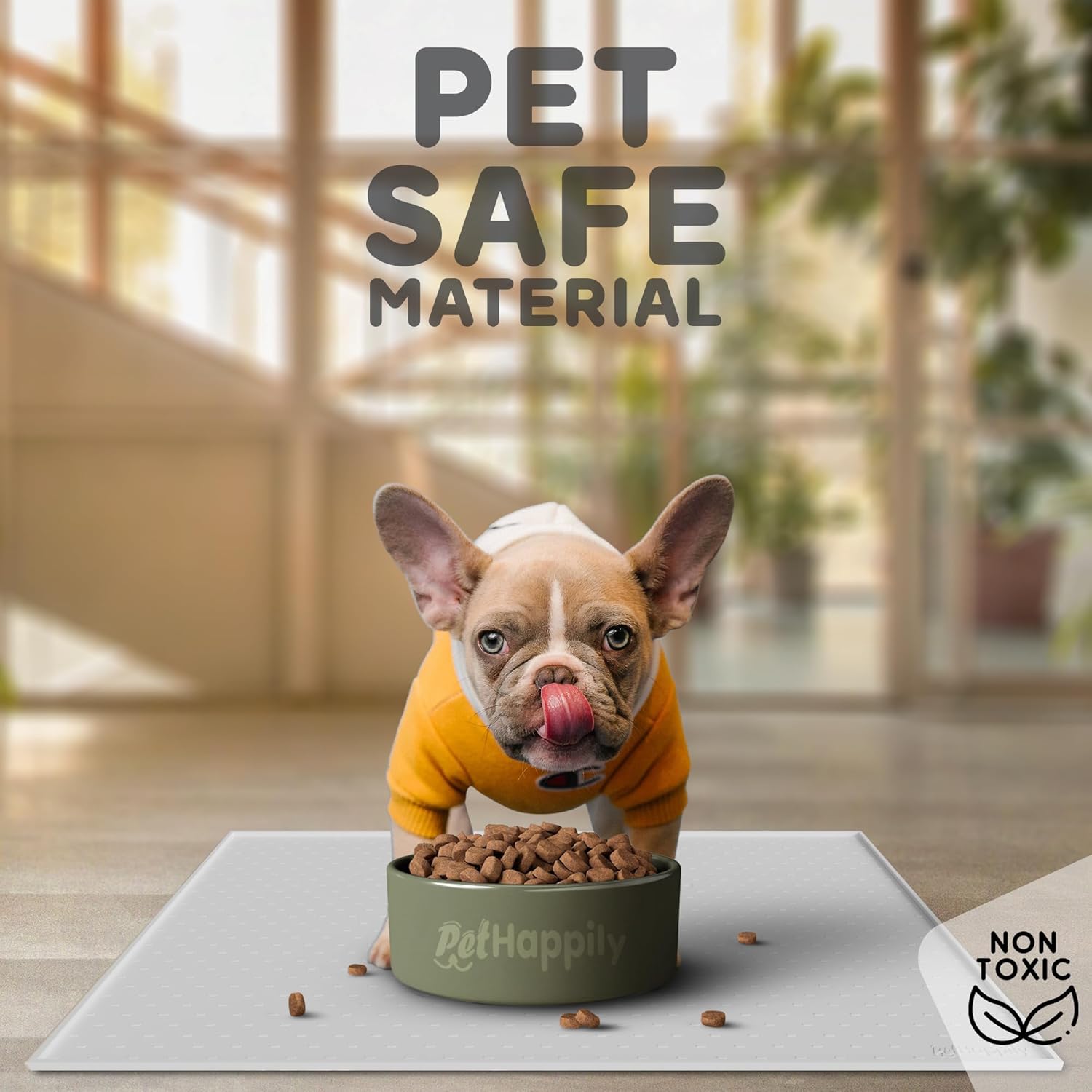- FOR ALL PETS & ALL TYPES OF BOWLS: This dog or cat mat for food comes in a range of sizes designed to cater to pets of all sizes, including puppies, full-grown, and even large ones, With a variety of colors to choose from, it can complement any home decor. It's perfect for use with all types of pet bowls, whether you have a cat fountain, raised feeder, or automatic feeder. Plus, it can also be used under litter boxes to keep things neat and tidy.