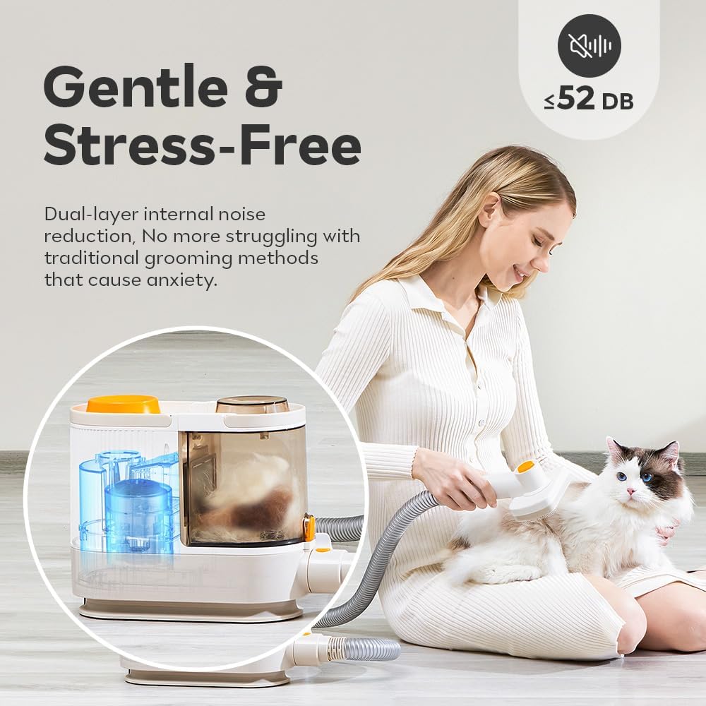 - Adjustable Suction Levels: Featuring a low-noise design for a calm grooming experience, the vacuum offers three adjustable suction levels to suit your pet's comfort and noise tolerance.