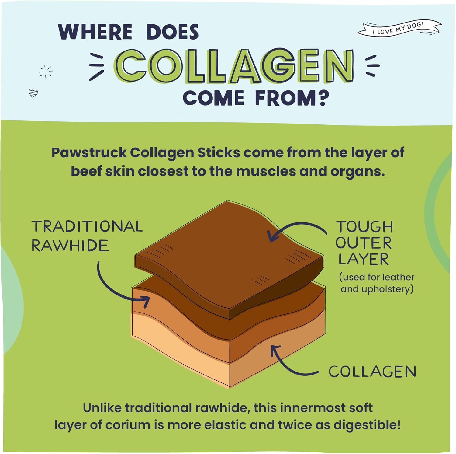 - All-Natural Collagen: Premium single-ingredient sticks made entirely with real beef bovine collagen and slow roasted to retain protein and flavor for an irresistible chew your pup will love! All dogs deserve the very best - that’s why Pawstruck only makes natural, wholesome, and healthy dog treats we proudly feed our own dogs!