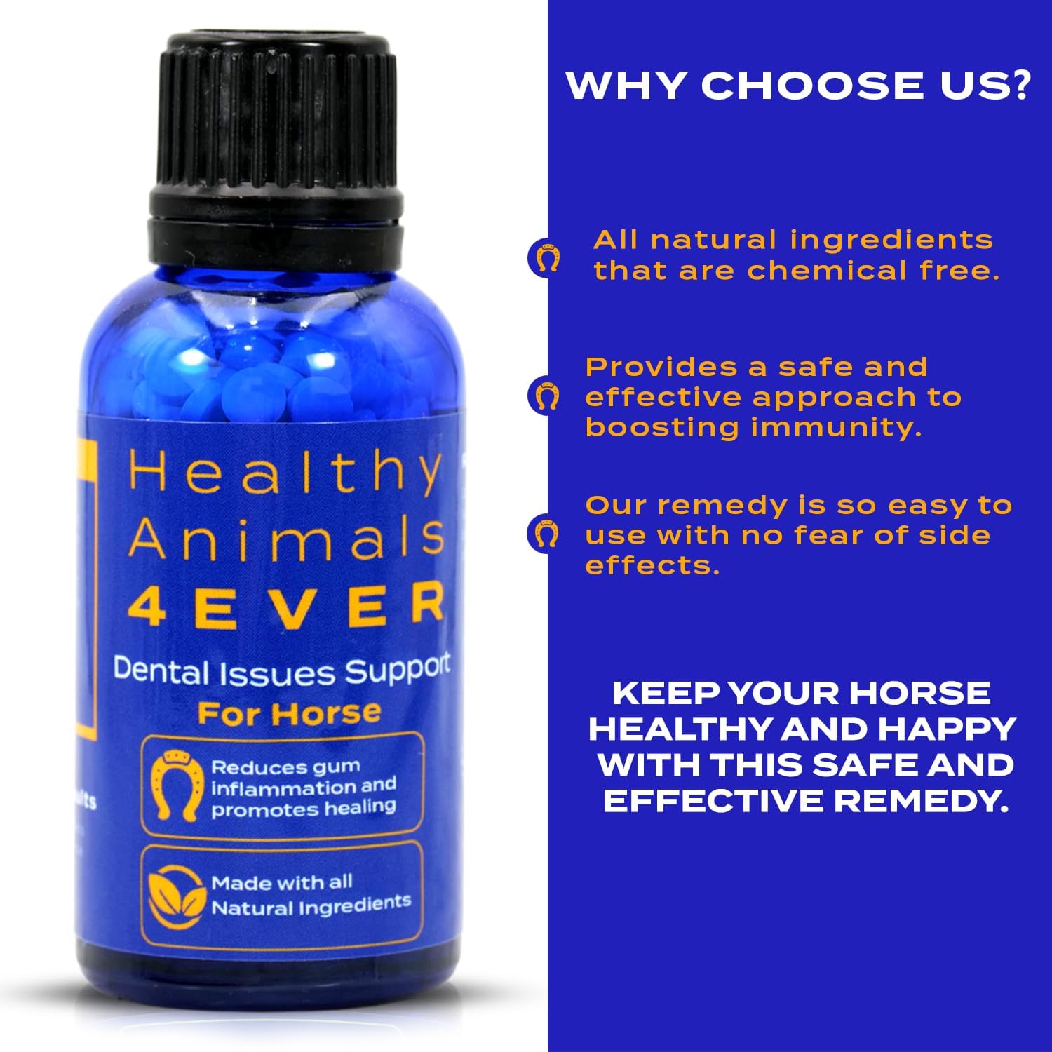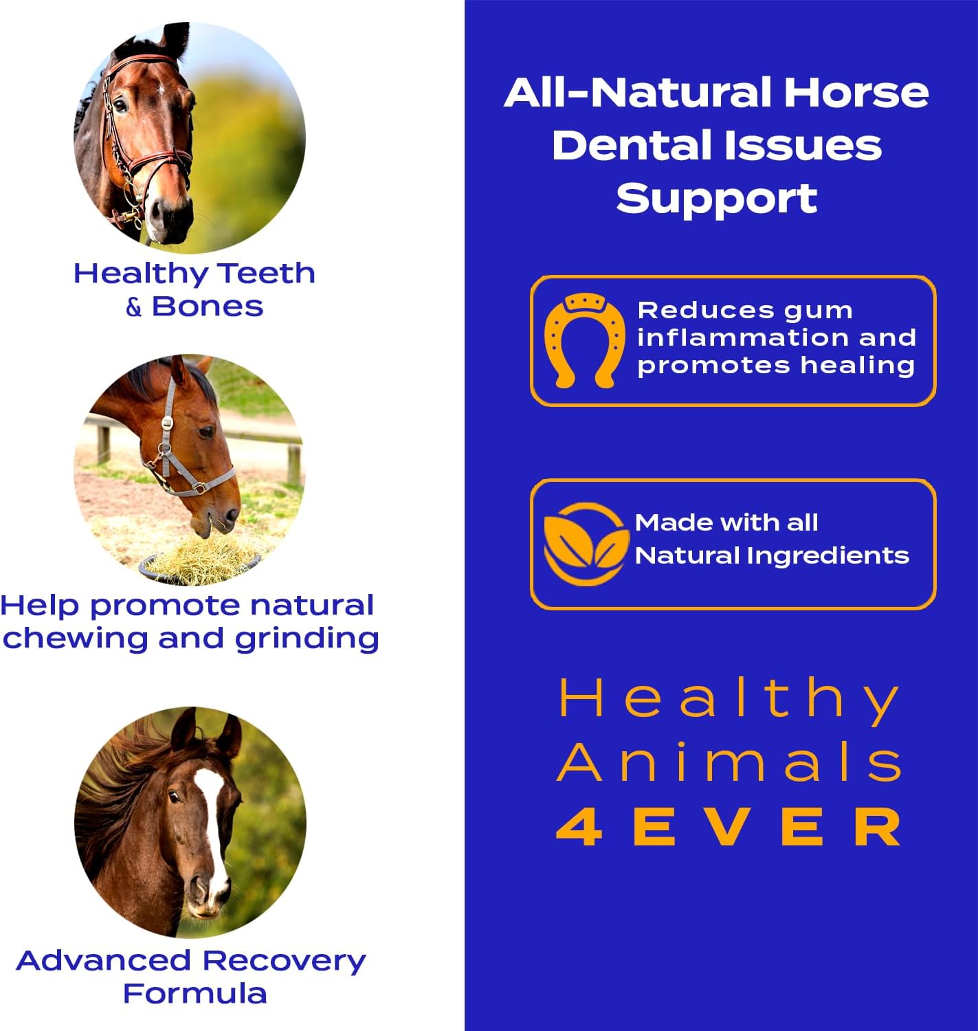 - ADVANCED RECOVERY FORMULA: Provide unparalleled healing and protection for your horse's teeth and gums with our scientifically developed formula. Specially crafted to address various dental injuries or issues, using this supplement ensures painless, improved dental health. Put your beloved pets' vision health first with Healthy Animals 4Ever’s All-Natural Horse Dental Health Support.