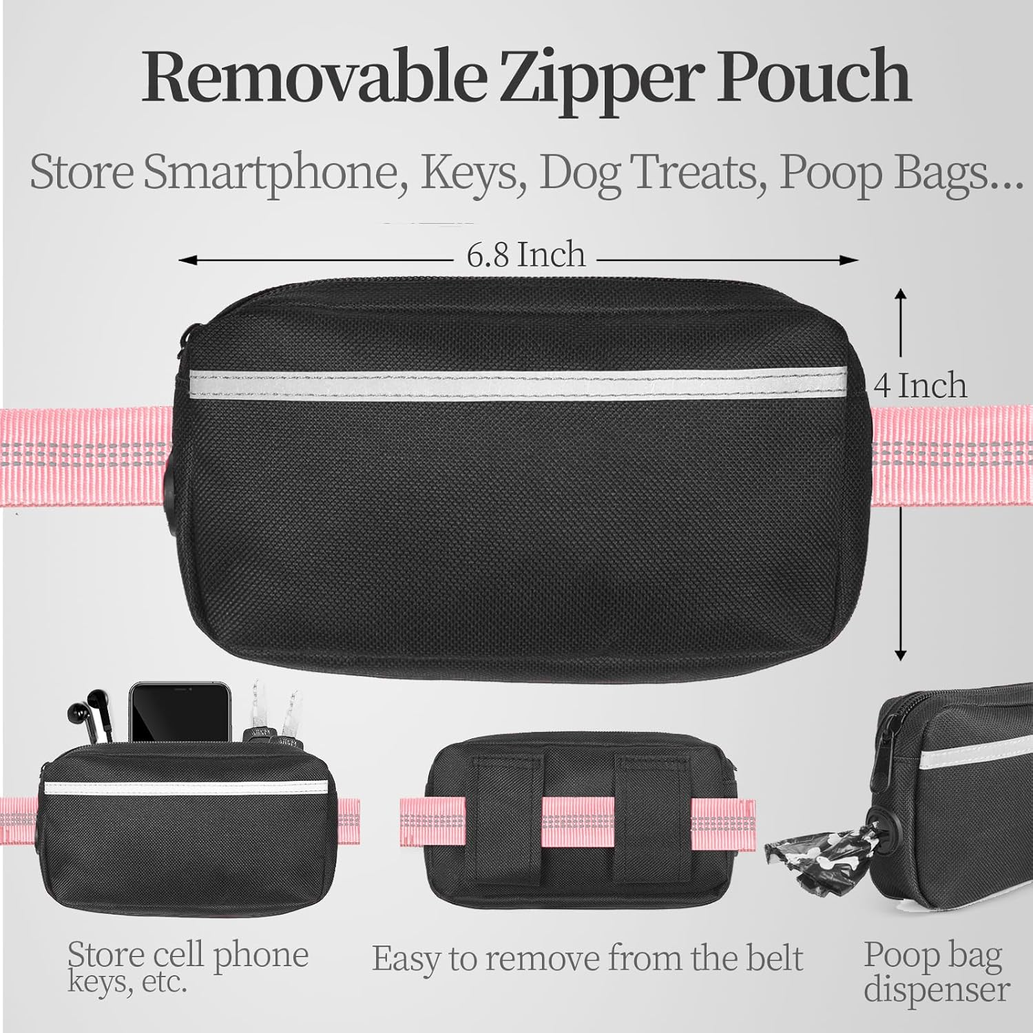 - Removable Zipper Pouch: Easily store and access your smartphone, keys, poop bags, dog treats in the removable zipper pouch. It’s a good add-on for the leash for training, walking, jogging, hiking training and running