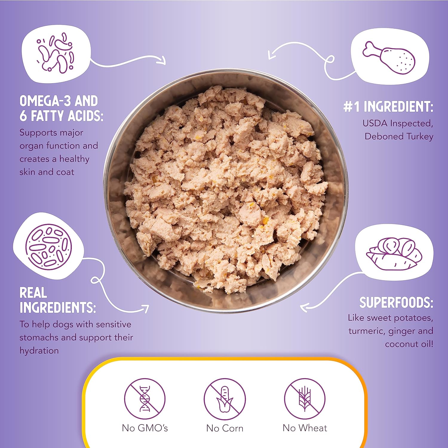 - Immune-Boosting Superfoods: Infused with turmeric & ginger, this wet dog food naturally supports immune health, keeping your dog strong and resilient.