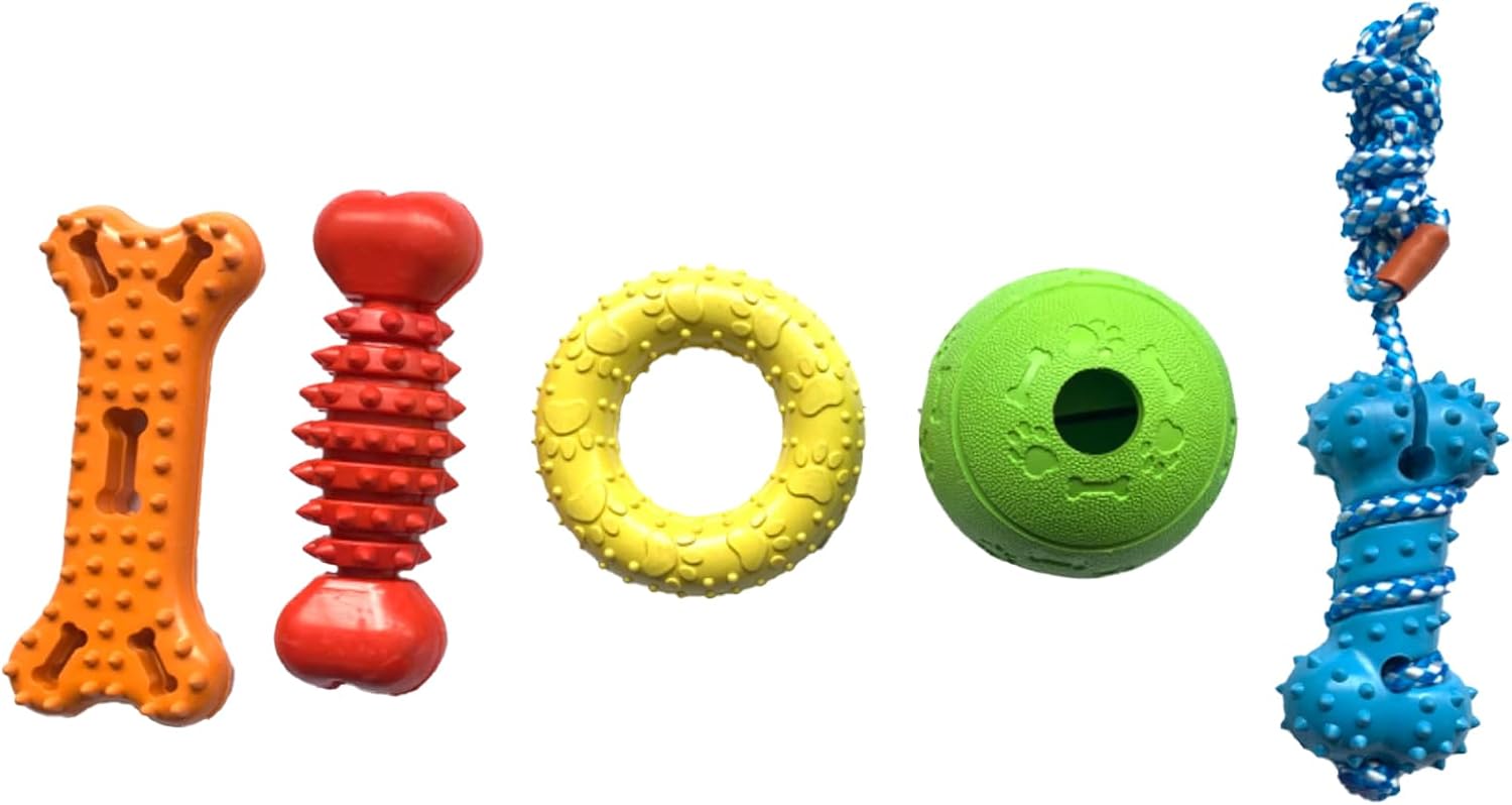 Jalousie Plush & Rope Dog Toys - Squeaky, Premium Rubber (5 Pack for Small/Medium Dogs & Puppies)